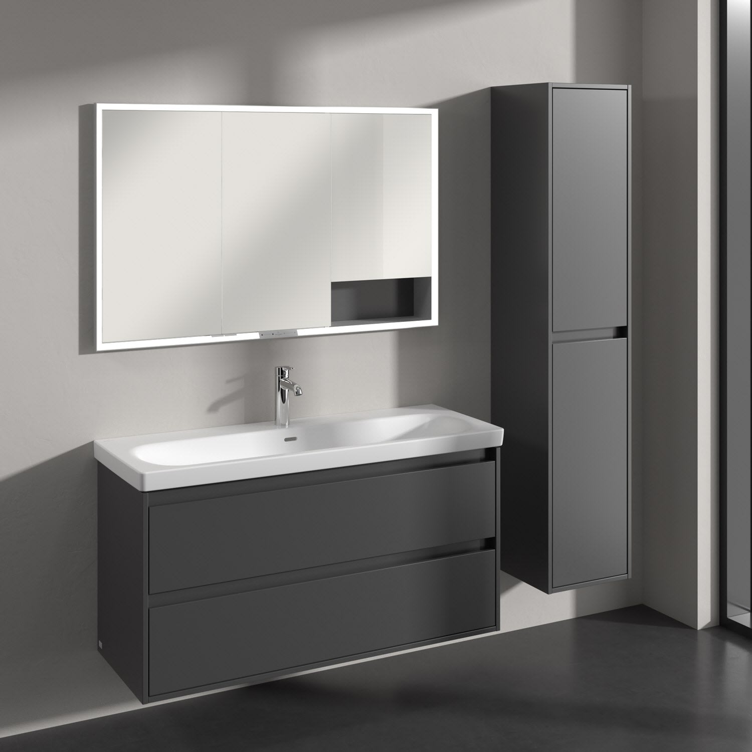Perfekt kombinierbar mit weiteren Möbeln der Skyla Kollektion im gleichen Dekor für ein harmonisches Gesamtbild. Ergänzend dazu: der Villeroy & Boch Spiegel More to See Lite+ für noch mehr Funktionalität am Waschplatz.
