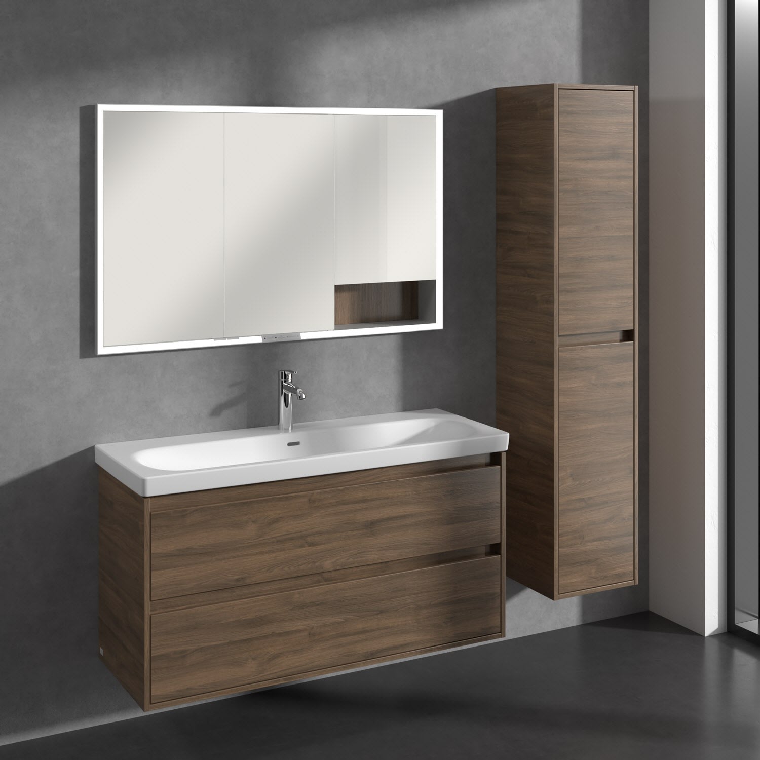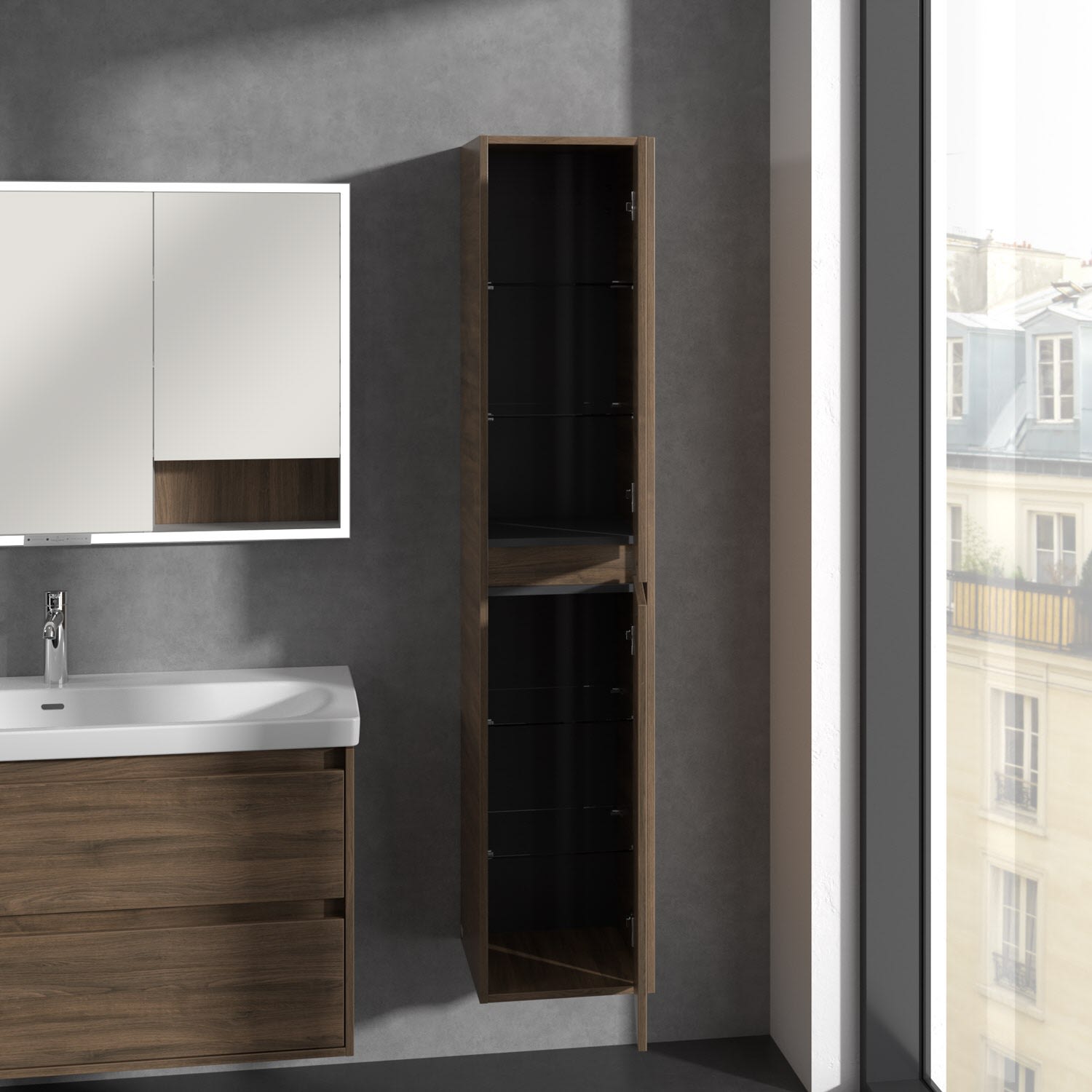 Perfekt kombinierbar mit weiteren Möbeln der Skyla Kollektion im gleichen Dekor für ein harmonisches Gesamtbild. Ergänzend dazu: der Villeroy & Boch Spiegel More to See Lite+ für noch mehr Funktionalität am Waschplatz.