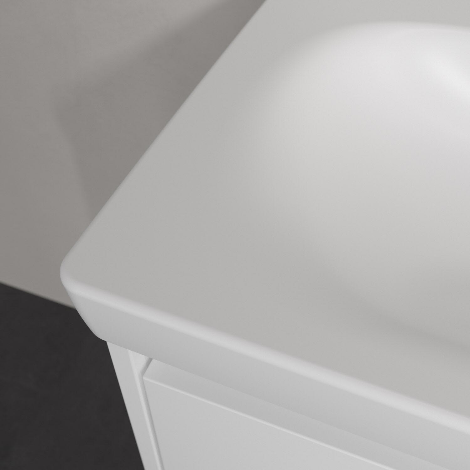 Klare Linien, sanfte Rundungen und extra Komfort: Der Skyla Schrankwaschtisch von Villeroy & Boch vereint trendbewusstes Design mit praktischer Raffinesse. Die eckige Außenform der Keramik harmoniert mit den weich fließenden Innenkonturen – perfekt für jedes Badezimmer, vom Badezimmer für die ganze Familien bis zur geräumigen Wellness-Oase. Die weichen Beckenkonturen bieten ein angenehmes Nutzungserlebnis und sind pflegeleicht. Die extra robuste Oberfläche (TitanCeram) macht den Waschtisch besonders kratzfest. Zeitlose Eleganz im Bad in bewährter Villeroy & Boch Qualität.