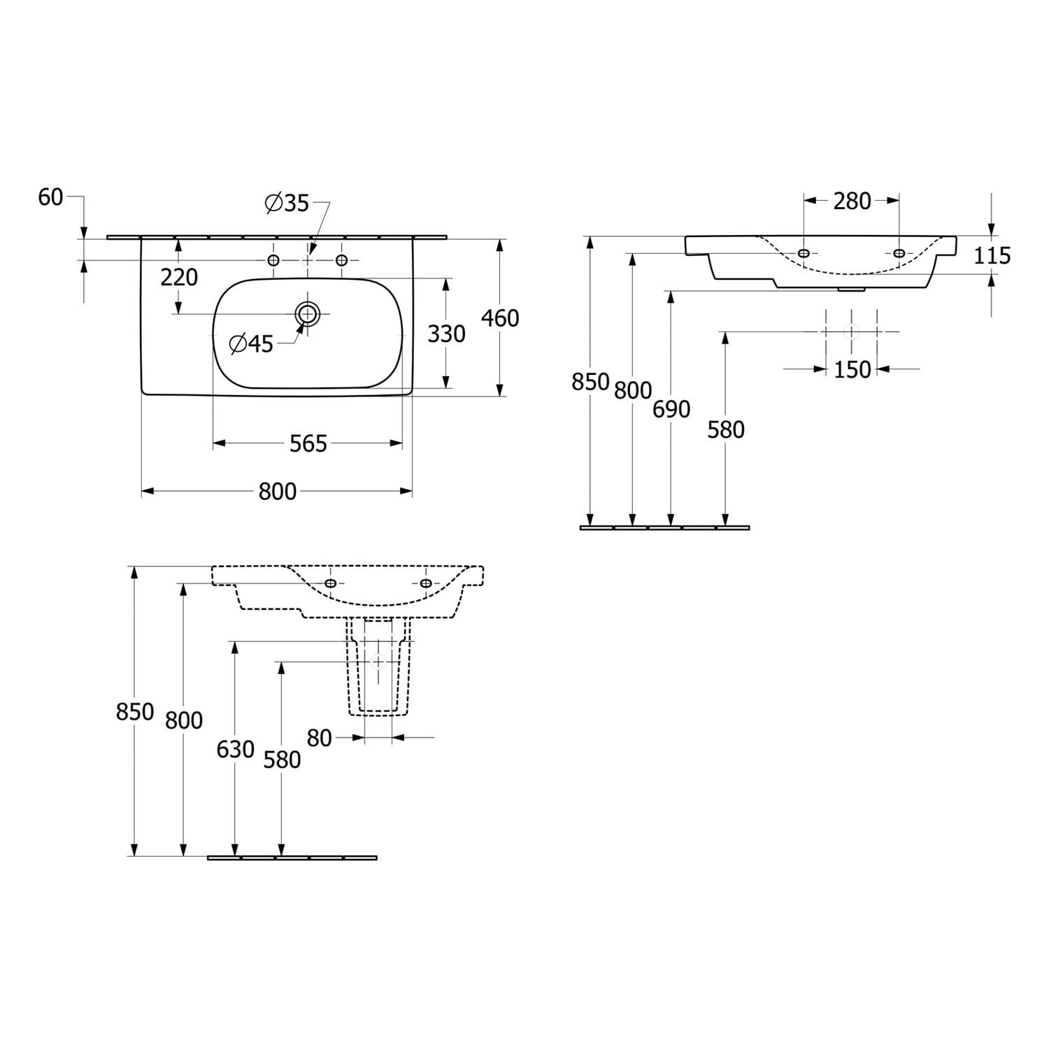 Villeroy & Boch Skyla Schrankwaschtisch 80 x 46 cm, mit Überlauf