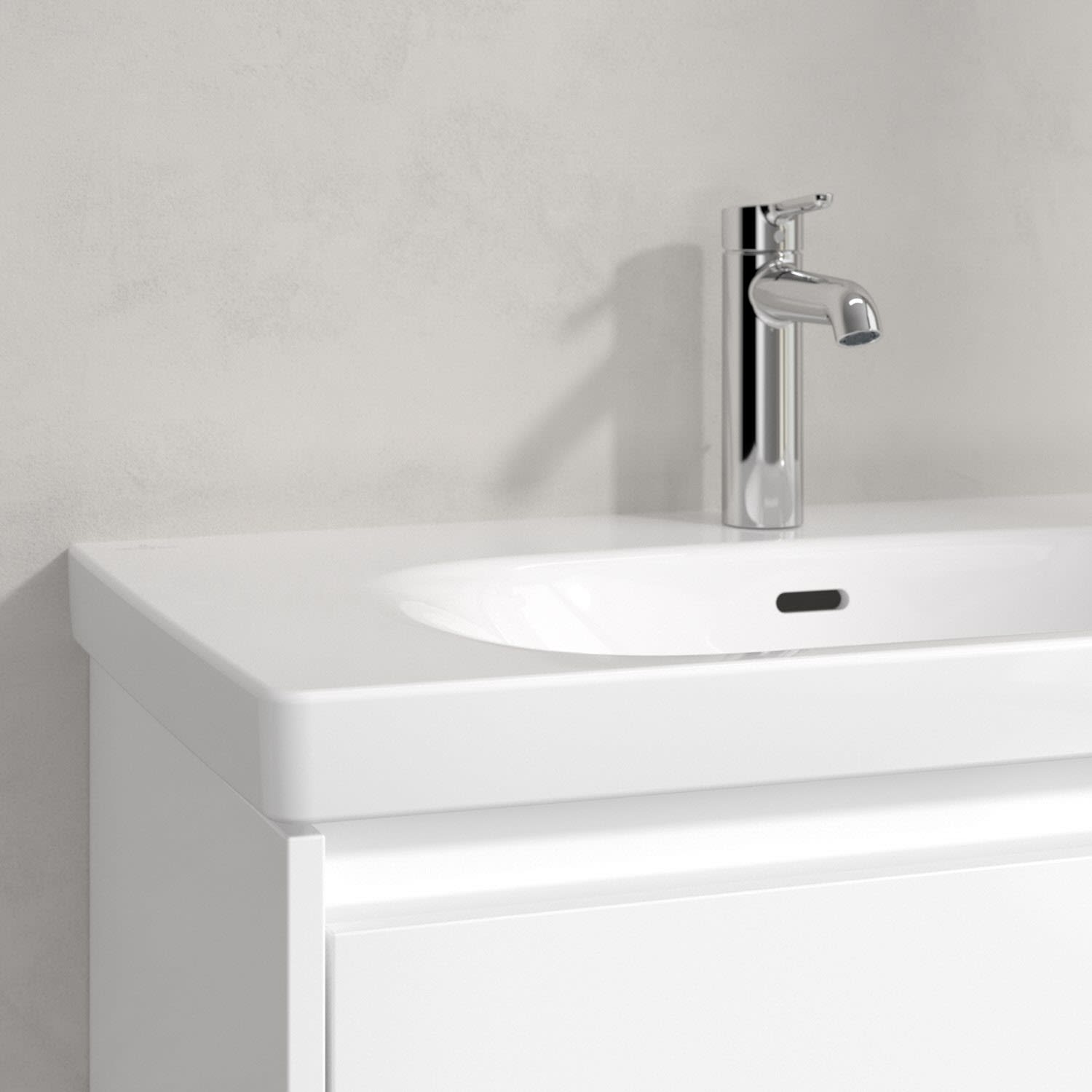 Klare Linien, sanfte Rundungen und extra Komfort: Der Skyla Schrankwaschtisch von Villeroy & Boch vereint trendbewusstes Design mit praktischer Raffinesse. Die eckige Außenform der Keramik harmoniert mit den weich fließenden Innenkonturen – perfekt für jedes Badezimmer, vom Familienbad bis zur Wellness-Oase. Die weichen Beckenkonturen bieten ein angenehmes Nutzungserlebnis und sind pflegeleicht. Die extra robuste Oberfläche (TitanCeram) macht den Waschtisch besonders kratzfest. Zeitlose Eleganz im Bad in bewährter Villeroy & Boch Qualität.