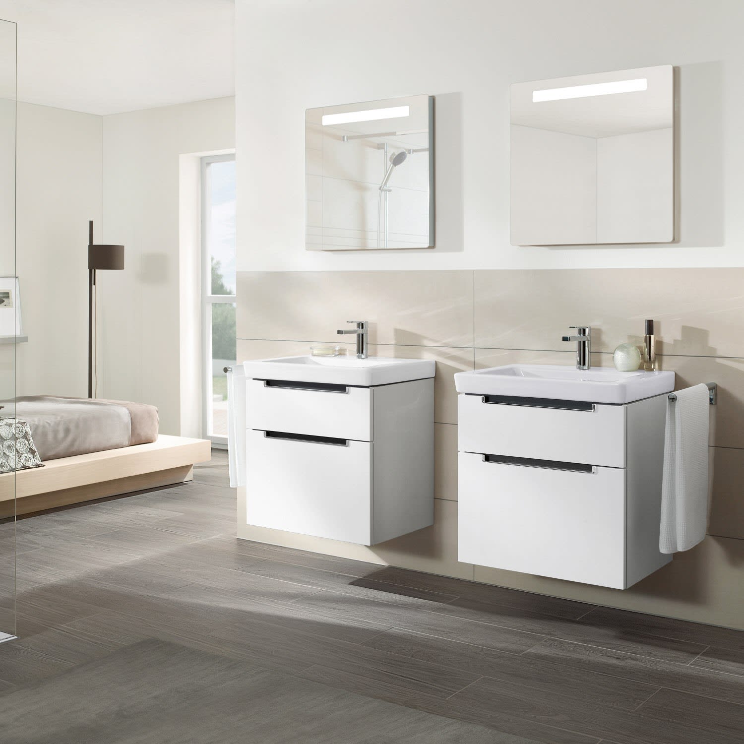 Das Badmöbel der Bestseller-Kollektion Subway 2.0 bringt mit seiner eckigen Formensprache Frische und Vielfalt ins Bad. Dieses Model besticht durch seine XXL-Höhe für besonders viel Stauraum. Die untere Schublade ist hoch genug, um z.B. eine handelsübliche Bodylotion-Flasche hochkant hinzustellen, während in der oberen Schublade kleinere Utensilien Platz finden. Die praktische Innenaufteilung sorgt für Ordnung und Übersichtlichkeit und dank variabler Elemente wie Accessory Boxen unterschiedlicher Größen oder verstellbarer Glasabtrennungen finden sich häufig genutzte Badutensilien direkt auf den ersten Blick. Die Griffe der Schubladen sind raffiniert in die Front eingelassen. Die SoftClosing Technologie sorgt für sanftes und lautloses Schließen. Sie wird durch den Mechanismus abgebremst und per Selbsteinzug langsam und geräuschlos zugezogen. Das ermöglicht problemloses Zugleiten auch bei schwer beladenen Auszügen und macht die tägliche Nutzung besonders komfortabel. Übrigens können die Schubladen dank Vollauszug in ihrer ganzen Tiefe geöffnet werden, damit Ihre Badutensilien direkt griffbereit sind.