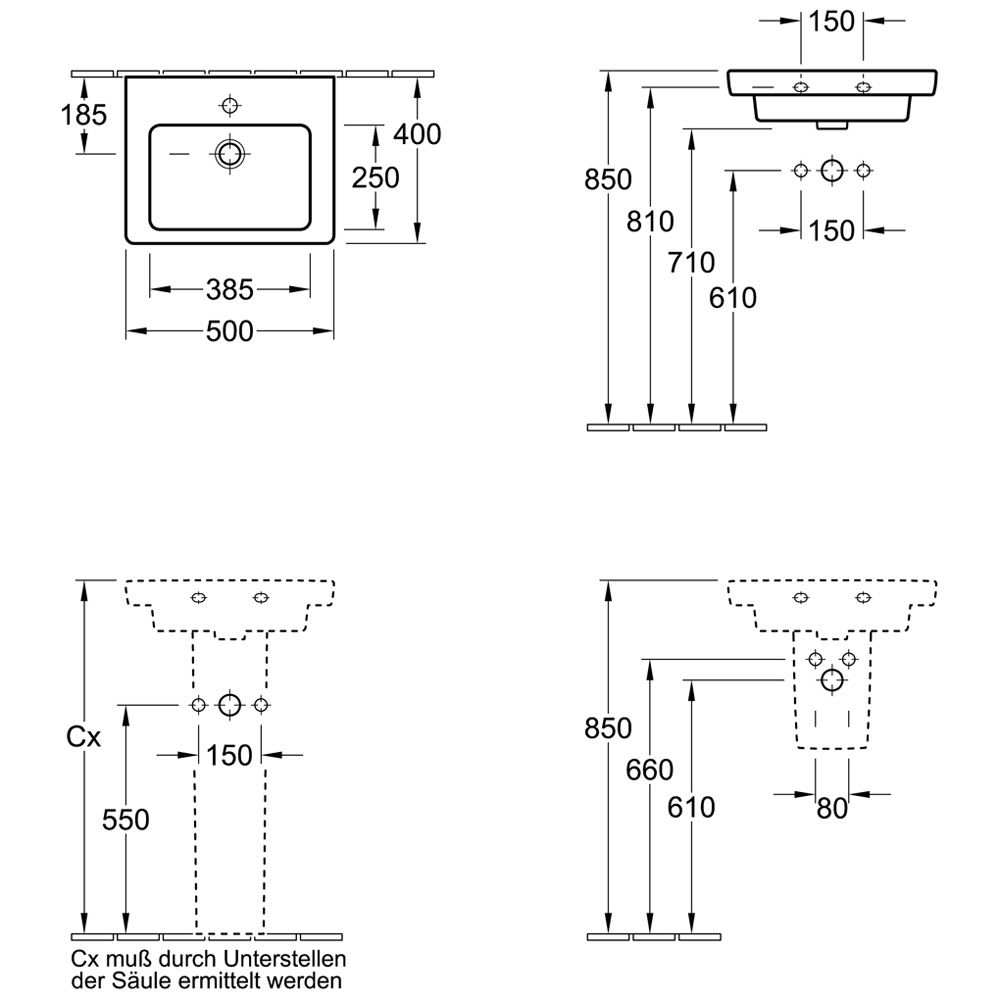 Villeroy & Boch Subway 2.0 Handwaschbecken 50 cm Unterseite ungeschliffen