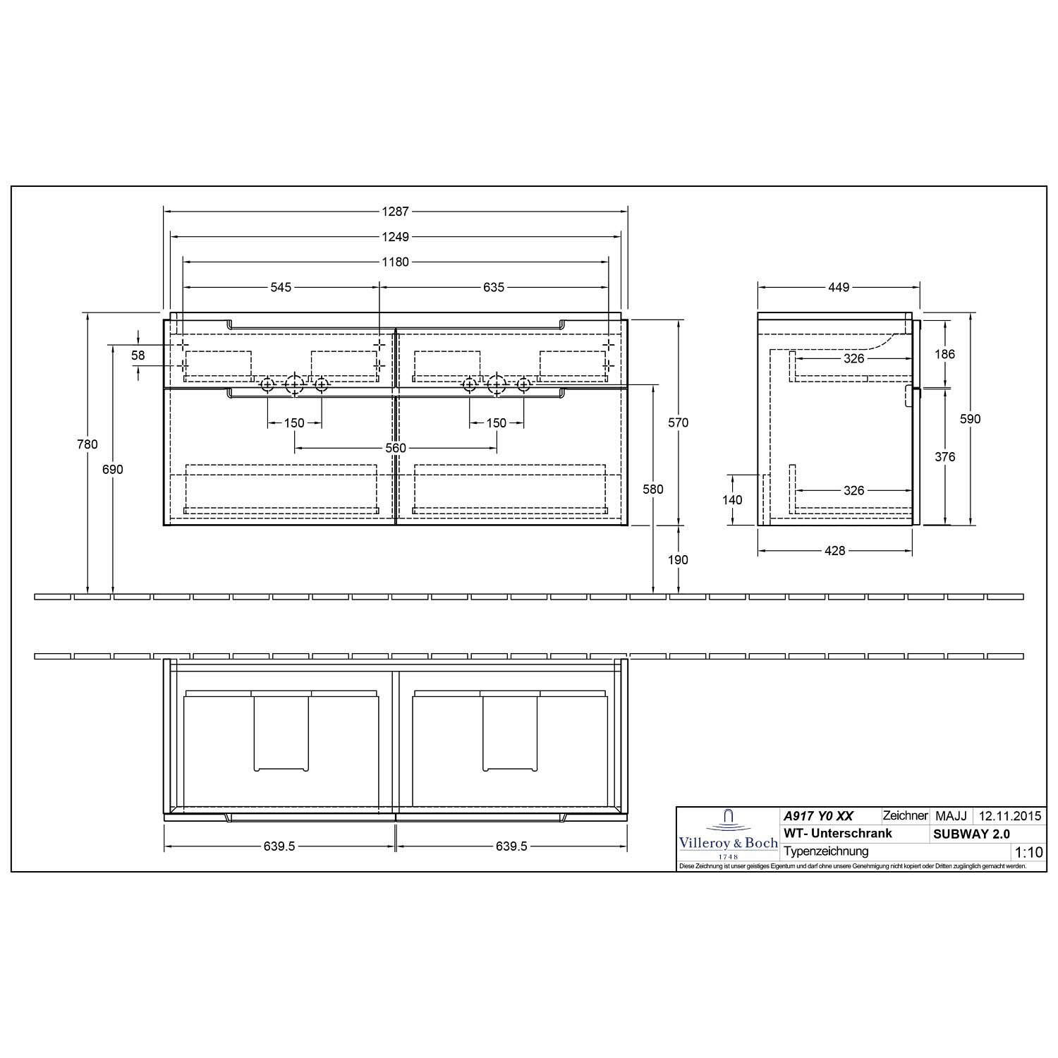 - Passend für V&B Subway 2.0 Schrank-Doppelwaschtische 130 cm Art. 7175 D0 / D1