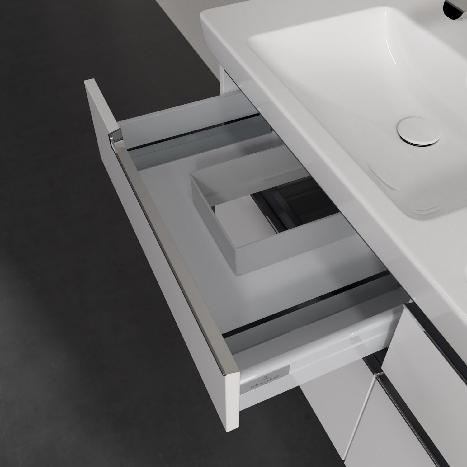 Villeroy & Boch Subway 2.0 Waschtischunterschrank XXL 128,7 cm, Griffe chromfarbig glänzend, 4 Auszüge