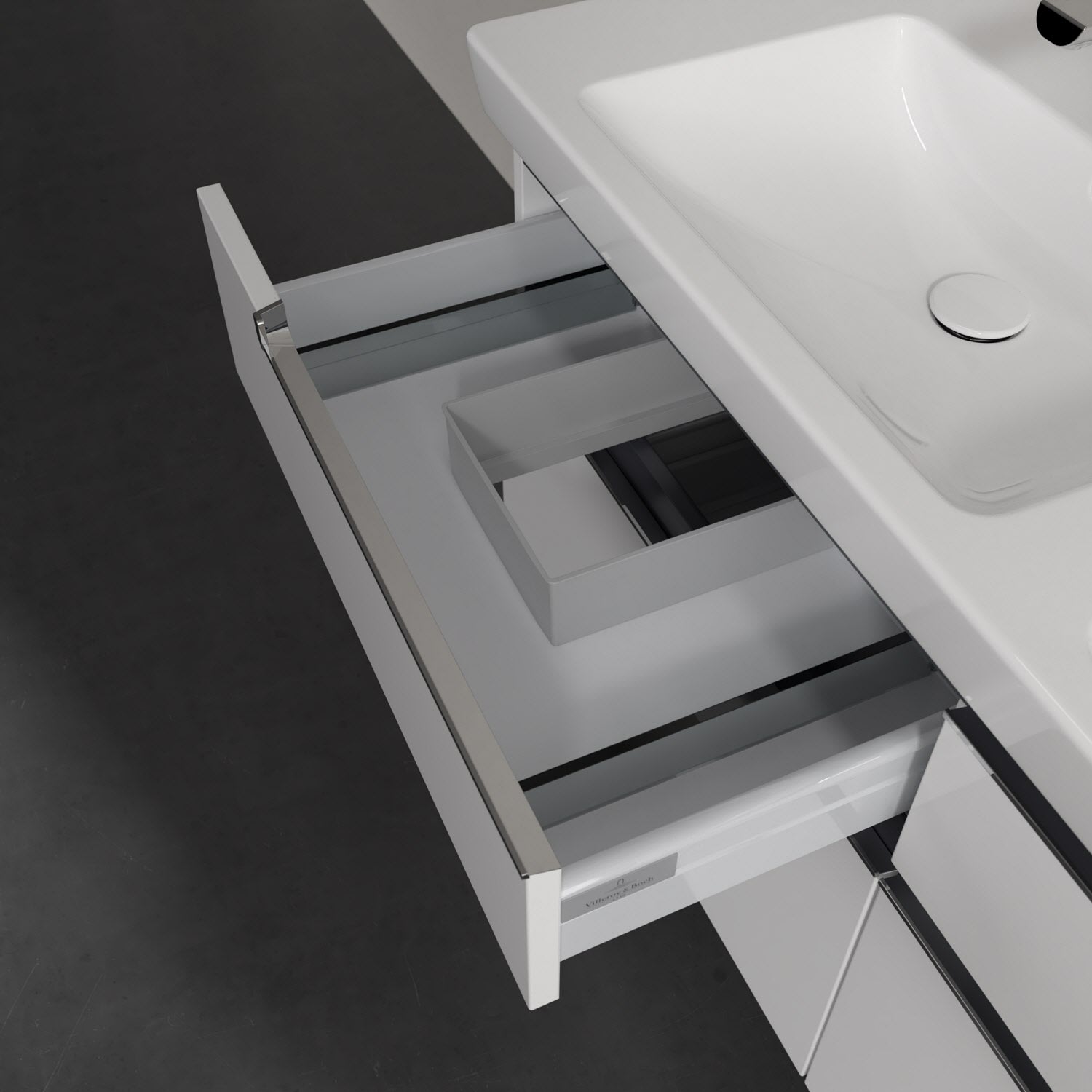 Villeroy & Boch Subway 2.0 Waschtischunterschrank XXL 128,7 cm, Griffe chromfarbig glänzend, 4 Auszüge