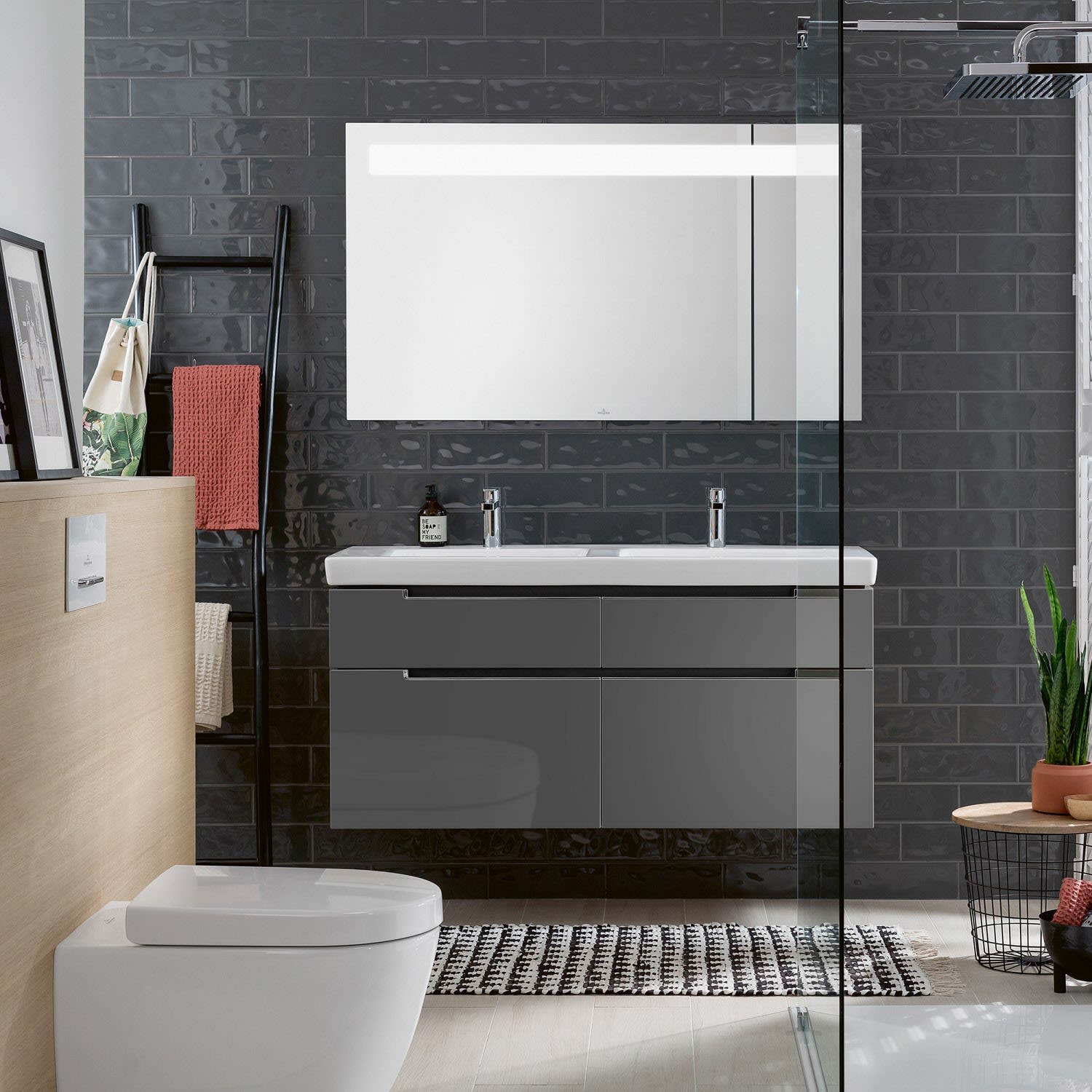 Villeroy & Boch Subway 2.0 Waschtischunterschrank XXL 128,7 cm, Griffe chromfarbig glänzend, 4 Auszüge