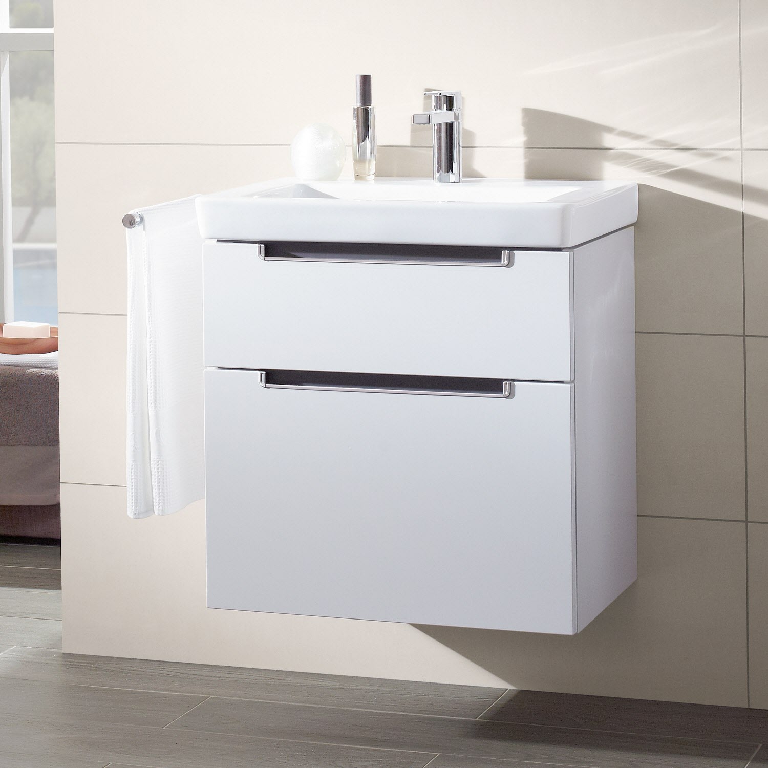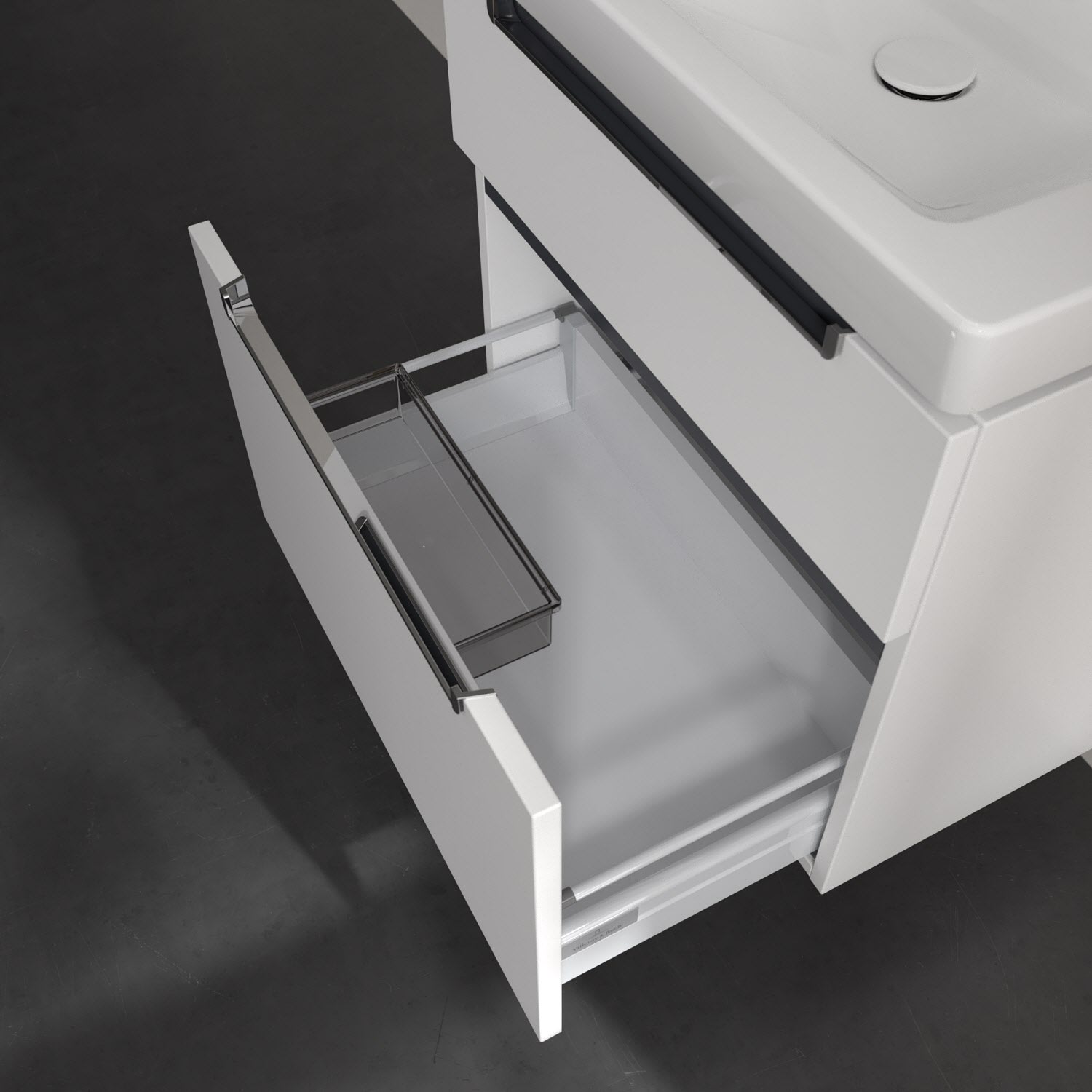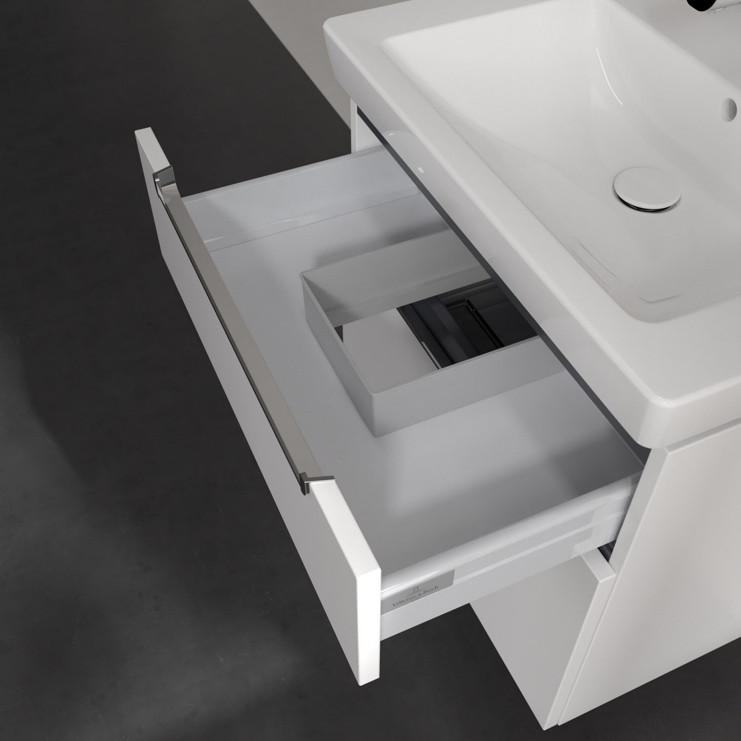 Villeroy & Boch Subway 2.0 Waschtischunterschrank XXL 63,7 cm, Griffe chromfarbig glänzend, 2 Auszüge