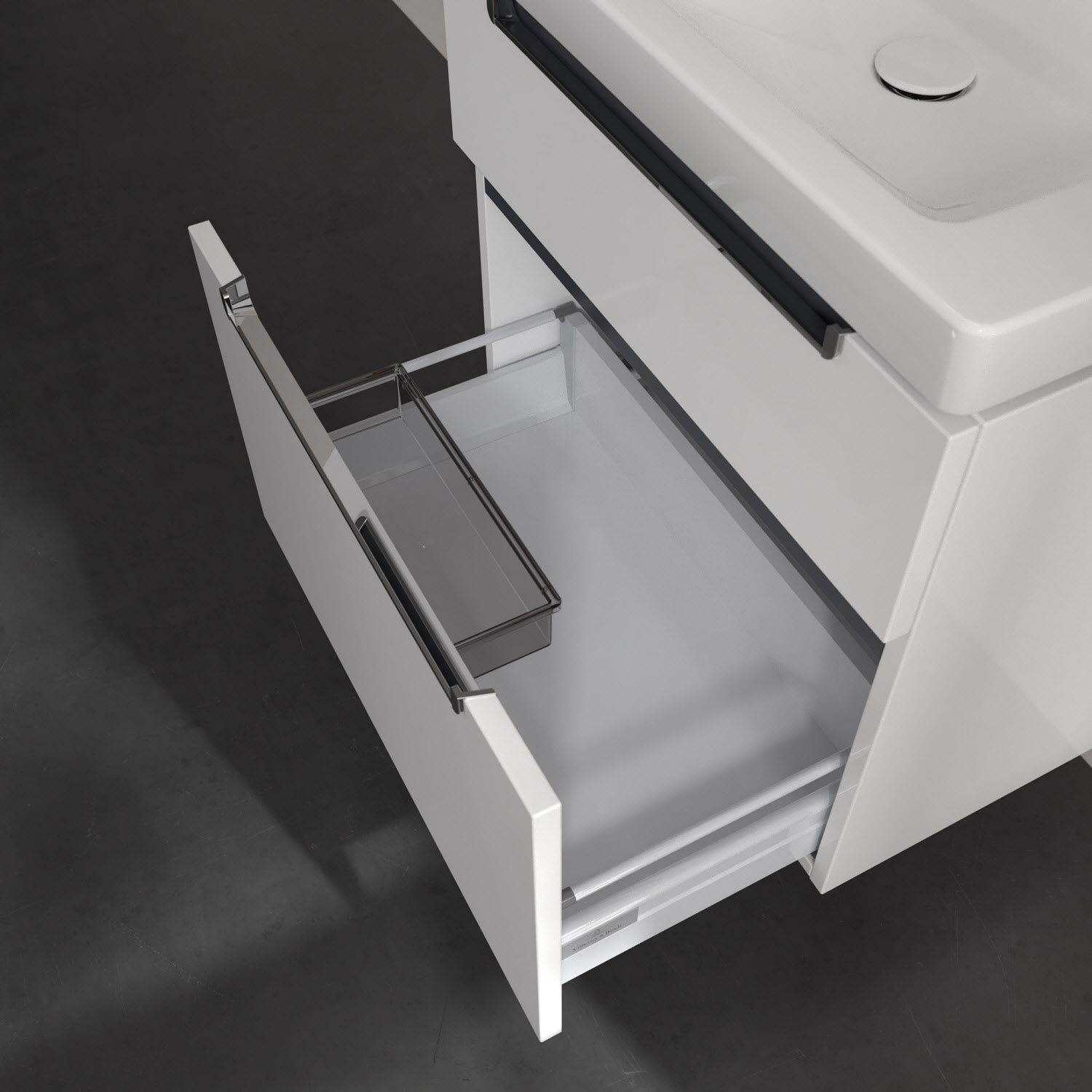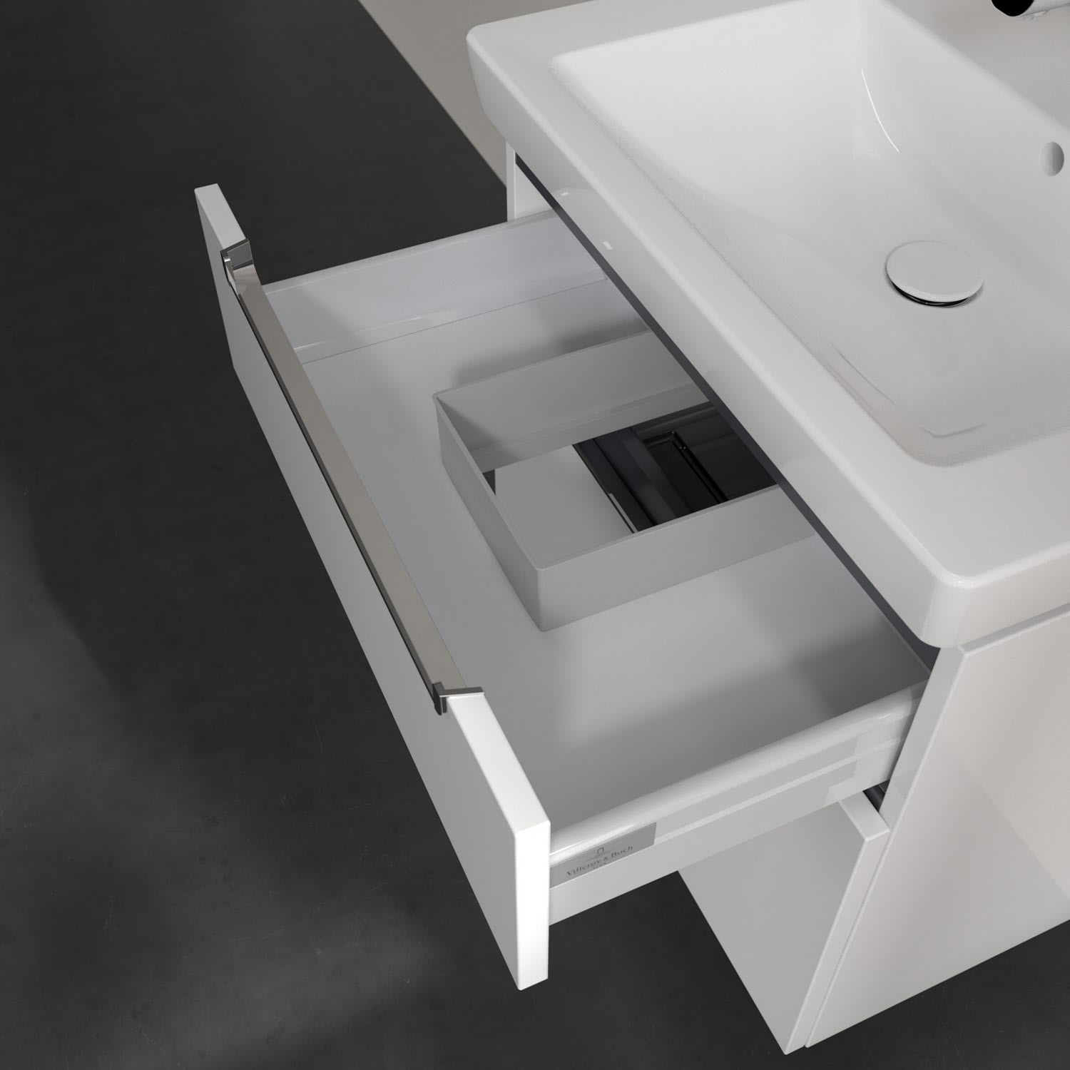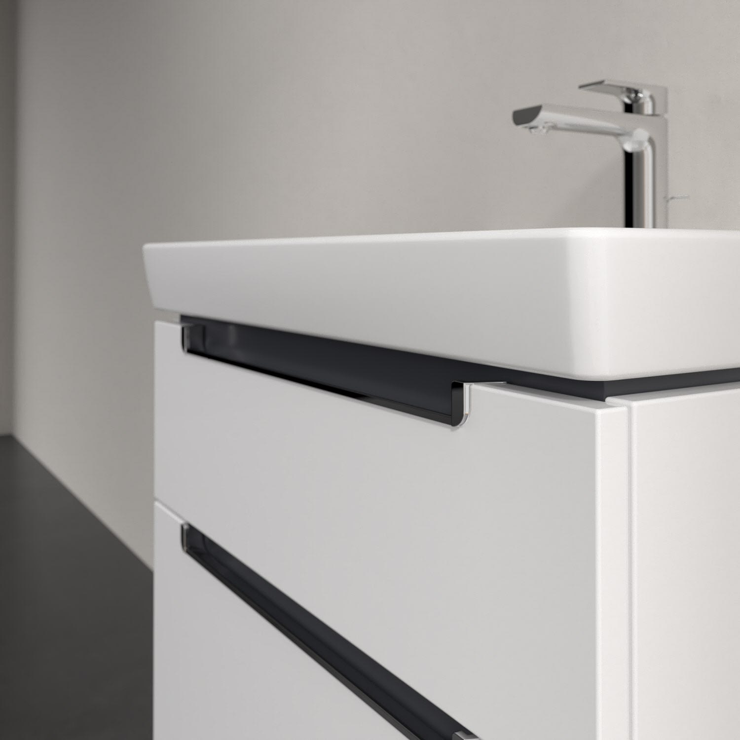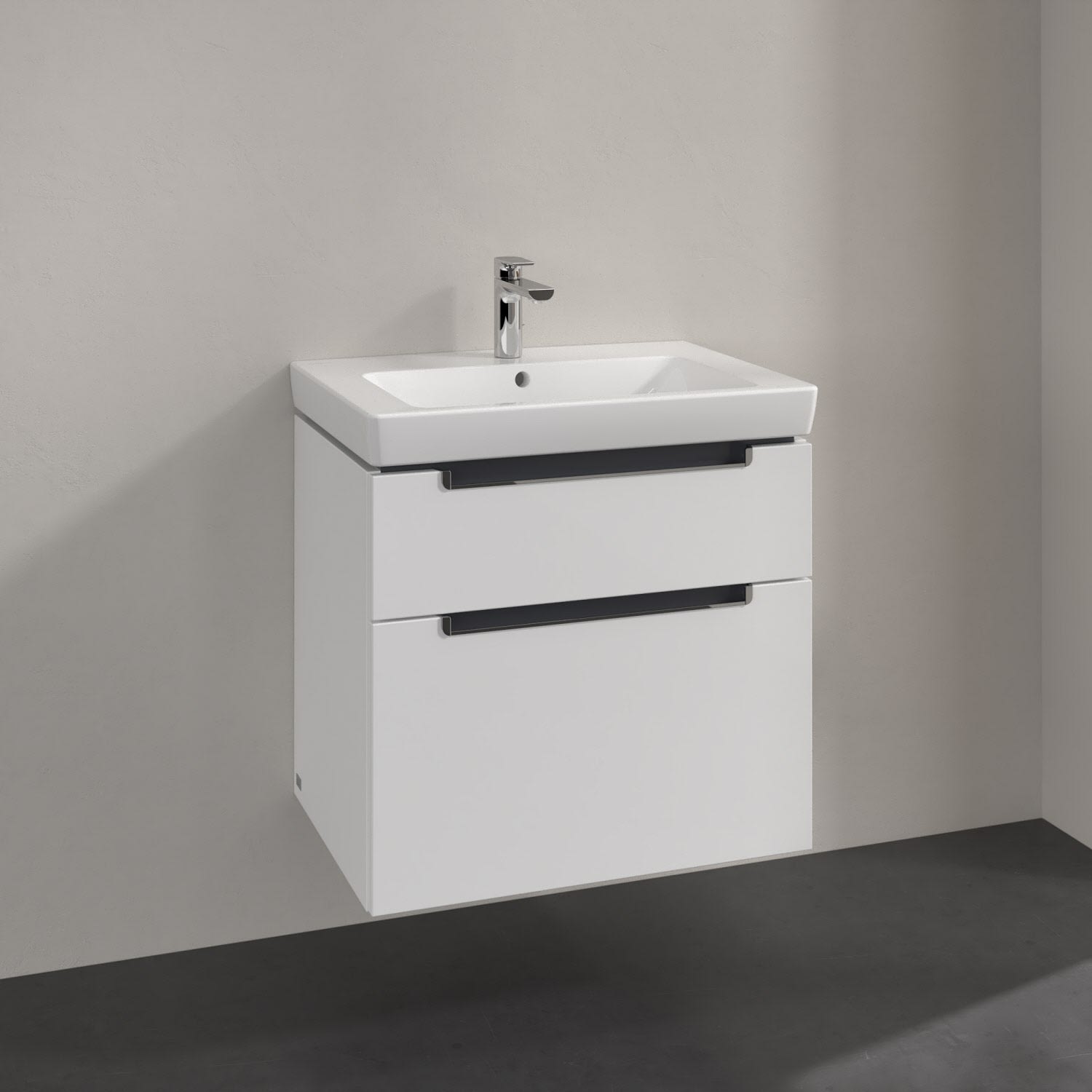 Villeroy & Boch Subway 2.0 Waschtischunterschrank XXL 63,7 cm, Griffe chromfarbig glänzend, 2 Auszüge