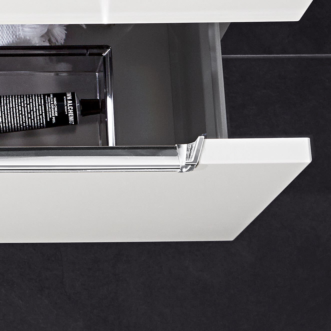 Villeroy & Boch Subway 2.0 Seitenschrank 35,4 cm Anschlag rechts, Abdeckplatte Glas weiß, Griffe chromfarbig glänzend