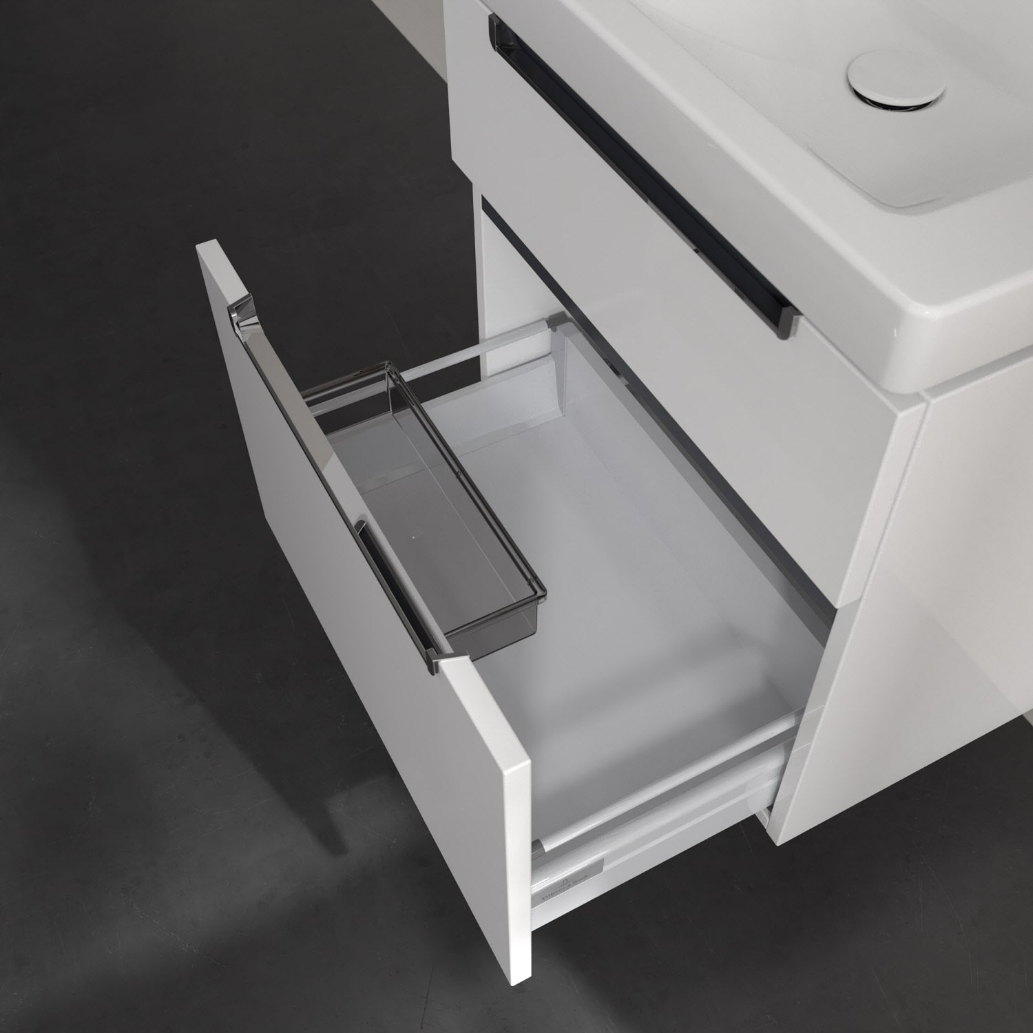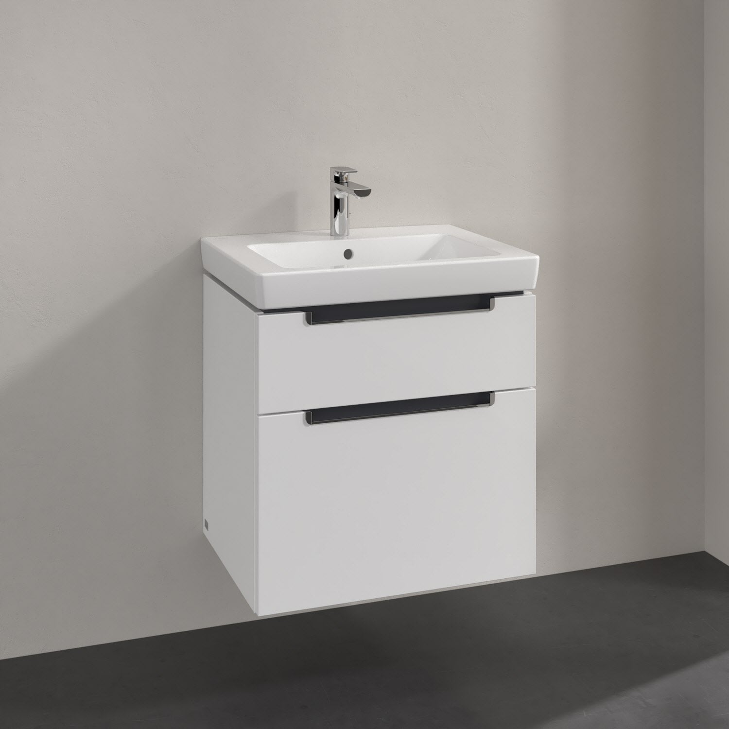 Villeroy & Boch Subway 2.0 Waschtischunterschrank XXL 58,7 cm, Griffe chromfarbig glänzend, 2 Auszüge