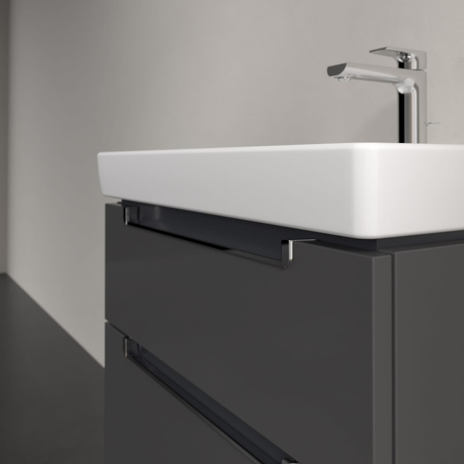 Villeroy & Boch Subway 2.0 Waschtischunterschrank XXL 58,7 cm, Griffe chromfarbig glänzend, 2 Auszüge