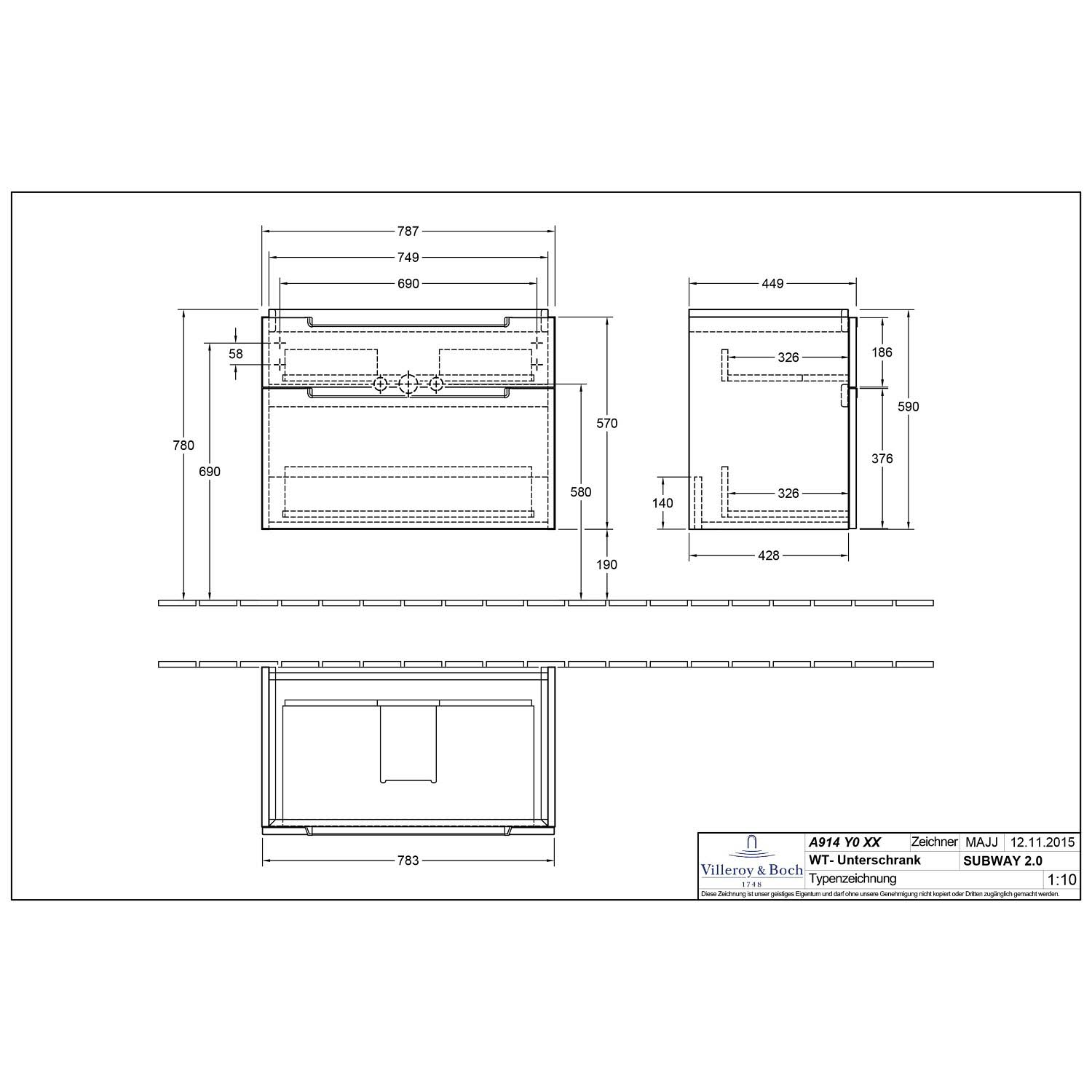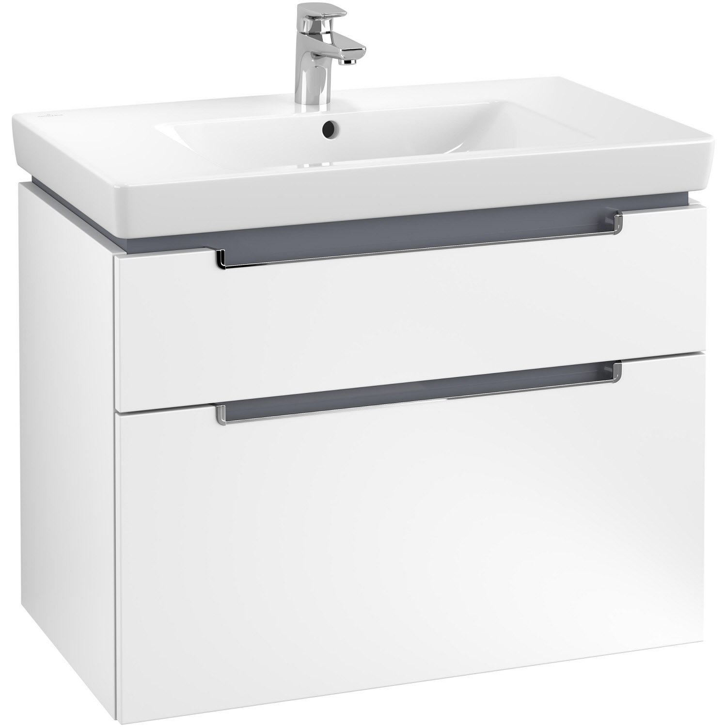 Villeroy & Boch Subway 2.0 Waschtischunterschrank XXL 78,7 cm, Griffe chromfarbig glänzend, 2 Auszüge