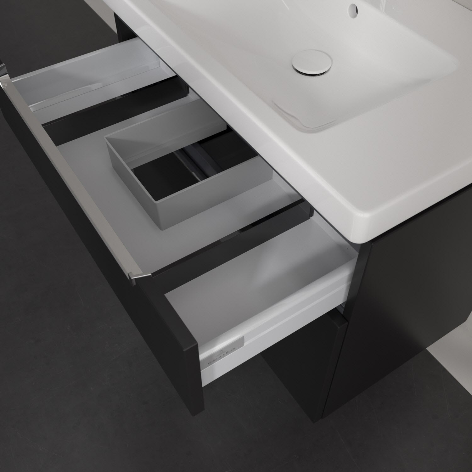 Villeroy & Boch Subway 2.0 Waschtischunterschrank XXL 78,7 cm, Griffe chromfarbig glänzend, 2 Auszüge
