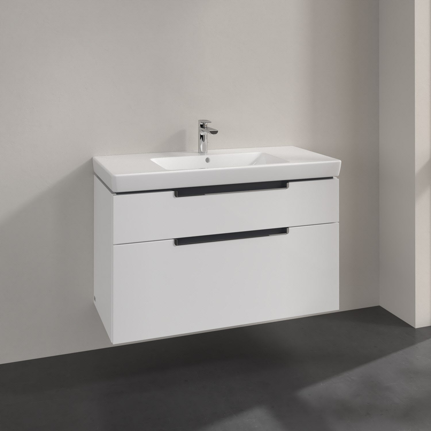 Villeroy & Boch Subway 2.0 Waschtischunterschrank XXL 98,7 cm, Griffe chromfarbig glänzend, 2 Auszüge