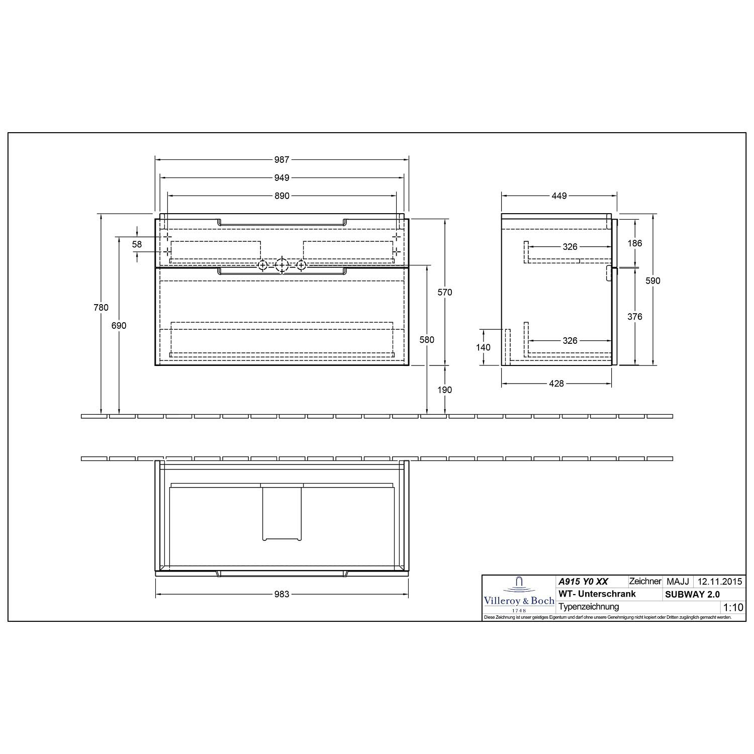 - Passend für V&B Subway 2.0 Schrankwaschtische 100 cm Art. 7175 A0 / A1