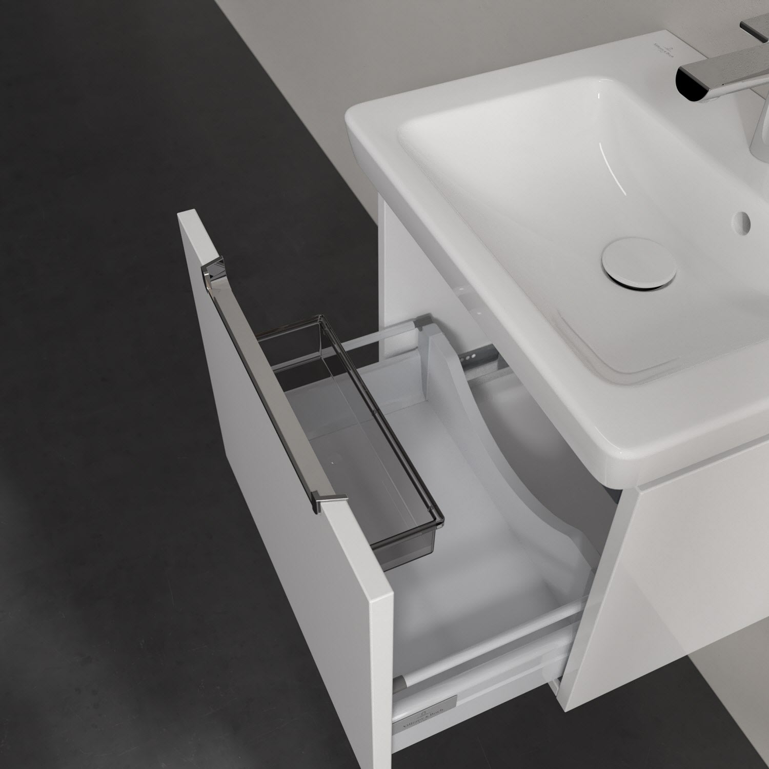 Villeroy & Boch Subway 2.0 Waschtischunterschrank 48,5 cm, Griff chromfarbig glänzend, 1 Auszug