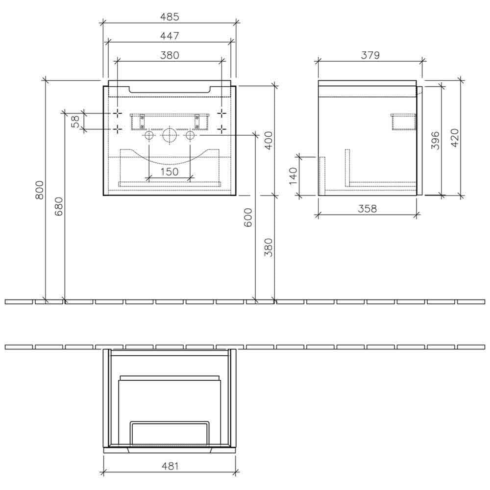Villeroy & Boch Subway 2.0 Waschtischunterschrank 48,5 cm, Griff chromfarbig glänzend, 1 Auszug