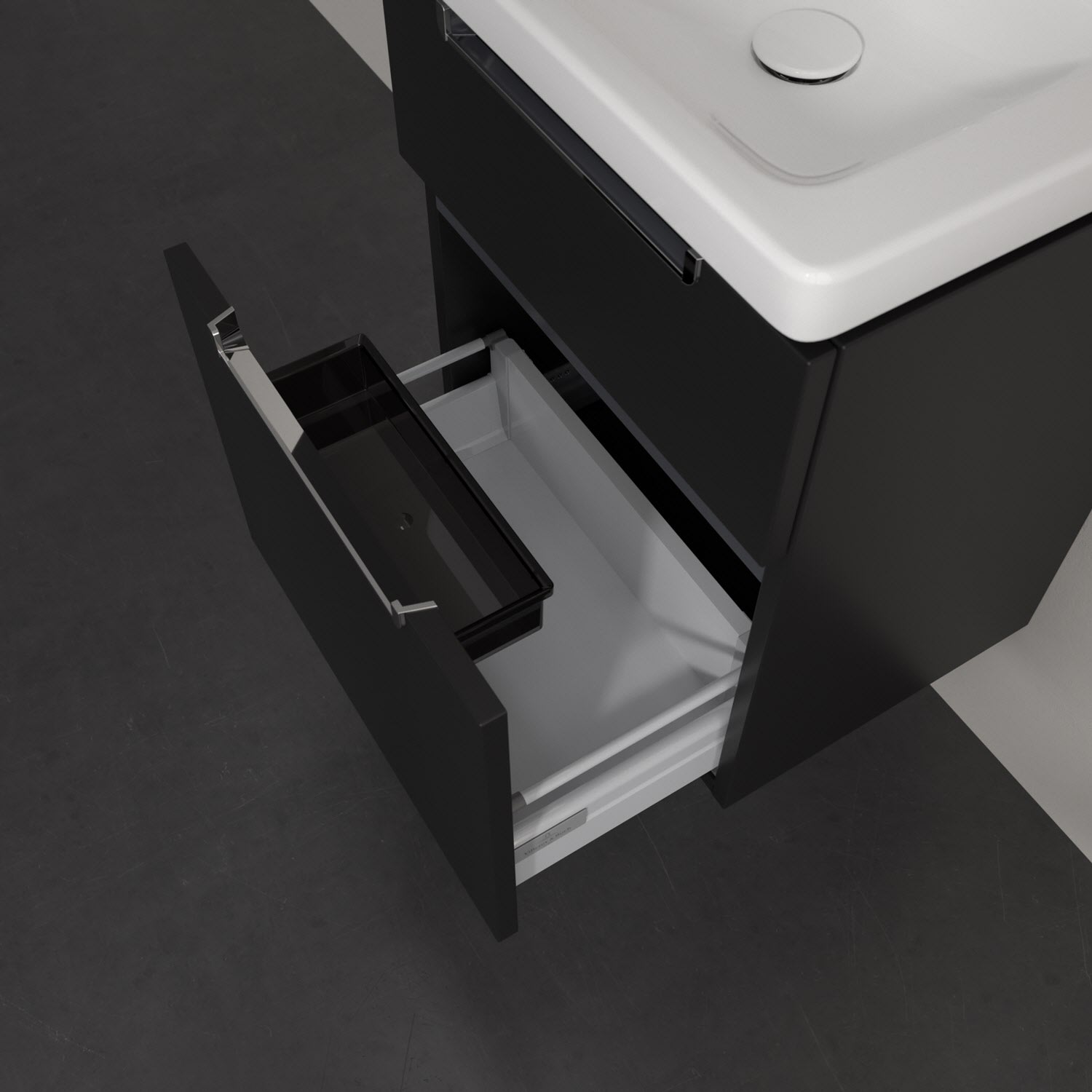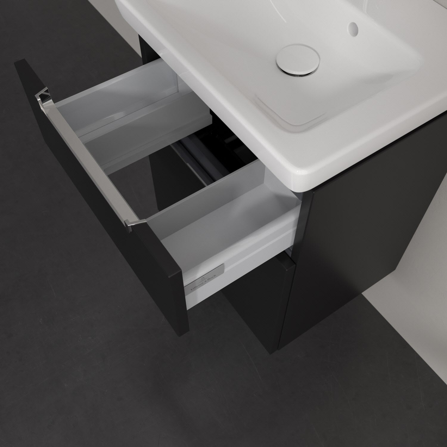 Villeroy & Boch Subway 2.0 Waschtischunterschrank XXL 48,5 cm, Griffe chromfarbig glänzend, 2 Auszüge