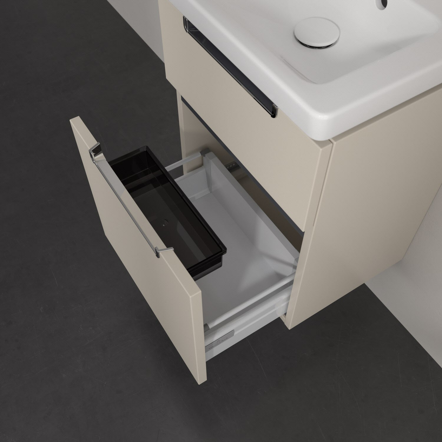 Villeroy & Boch Subway 2.0 Waschtischunterschrank XXL 44 cm, Griffe chromfarbig glänzend, 2 Auszüge