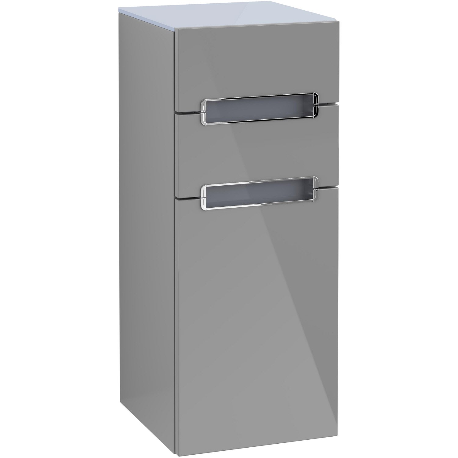 Villeroy & Boch Subway 2.0 Seitenschrank 35,4 cm Anschlag links, Abdeckplatte Glas silbergrau, Griffe chromfarbig glänzend