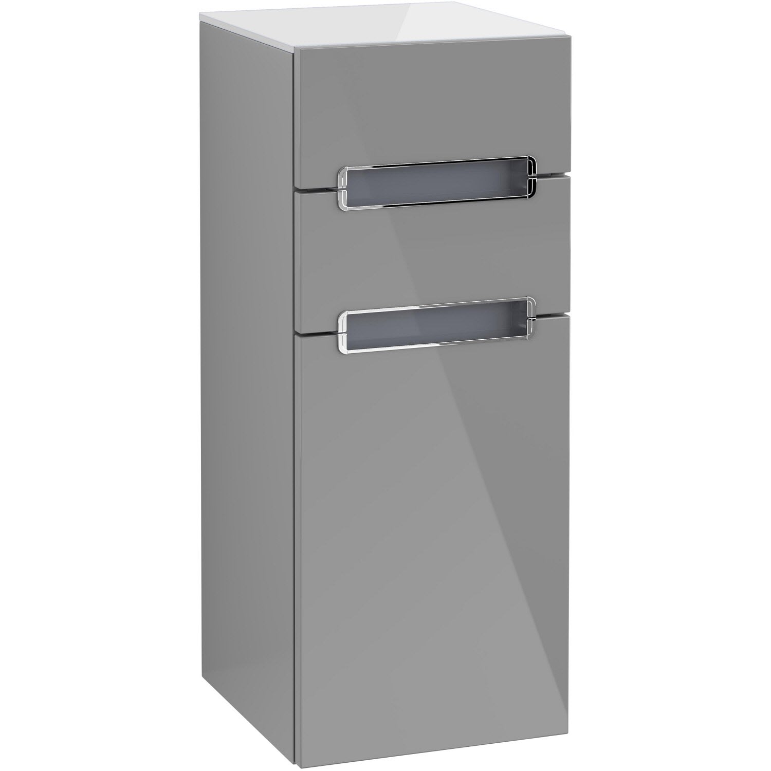 Villeroy & Boch Subway 2.0 Seitenschrank 35,4 cm Anschlag rechts, Abdeckplatte Glas weiß, Griffe chromfarbig glänzend