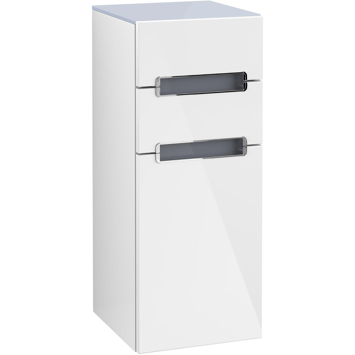 Villeroy & Boch Subway 2.0 Seitenschrank 35,4 cm Anschlag rechts, Abdeckplatte Glas silbergrau, Griffe chromfarbig glänzend