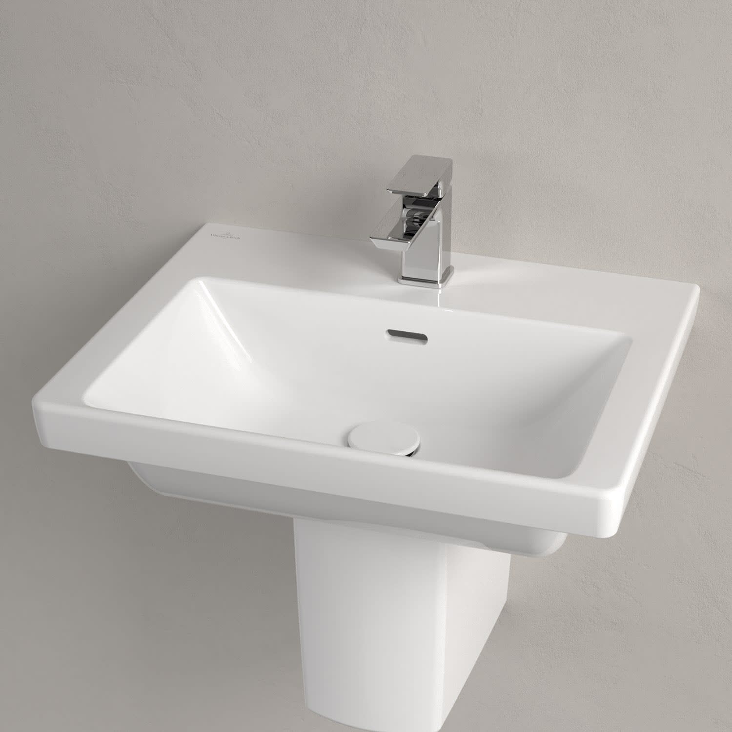 Der rechteckige Schrankwaschtisch der Kollektion Subway 3.0 von Villeroy & Boch zeigt sich in gewohnt zeitlosem Design. Sein schmaler Rand und das längliche Überlaufloch sorgen für einen modernen Look und ein stilvolles Gesamtbild. Das tiefe Becken erfüllt alle Anforderungen des Alltags und bietet ausreichend Platz zum Hände waschen, Zähne putzen oder sogar für die Textilwäsche. Und auf der breiten Hahnlochbank findet sich genügend Ablagefläche für Seifenspender und andere Utensilien.