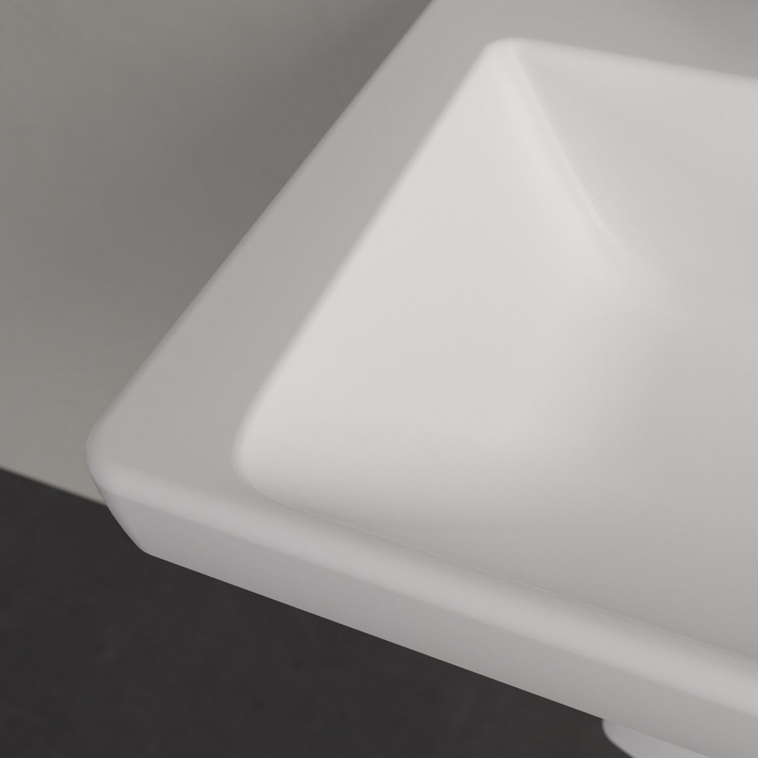 Der rechteckige Schrankwaschtisch der Kollektion Subway 3.0 von Villeroy & Boch zeigt sich in gewohnt zeitlosem Design. Sein schmaler Rand und das längliche Überlaufloch sorgen für einen modernen Look und ein stilvolles Gesamtbild. Das tiefe Becken erfüllt alle Anforderungen des Alltags und bietet ausreichend Platz zum Hände waschen, Zähne putzen oder sogar für die Textilwäsche. Und auf der breiten Hahnlochbank findet sich genügend Ablagefläche für Seifenspender und andere Utensilien.