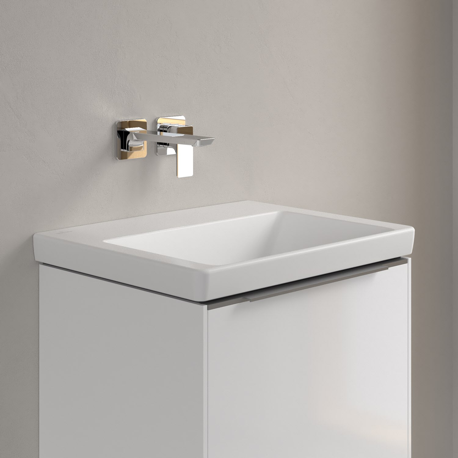Der rechteckige Schrankwaschtisch der Kollektion Subway 3.0 von Villeroy & Boch zeigt sich in gewohnt zeitlosem Design. Sein schmaler Rand sorgt nicht nur für einen modernen Look, sondern auch für ein noch größeres Becken. Mit seiner Tiefe erfüllt es alle Anforderungen des Alltags und bietet ausreichend Platz zum Hände waschen, Zähne putzen oder sogar für die Textilwäsche. Und auf der breiten Hahnlochbank findet sich genügend Ablagefläche für Seifenspender und andere Utensilien. Noch ein Pluspunkt: Dank der schmutzabweisenden Oberfläche fällt die Reinigung besonders leicht.