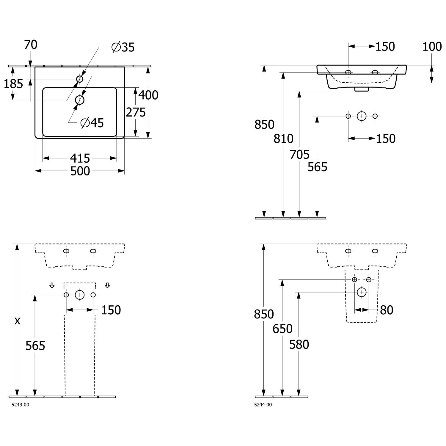 - mit Überlauf, Hahnloch durchgestochen