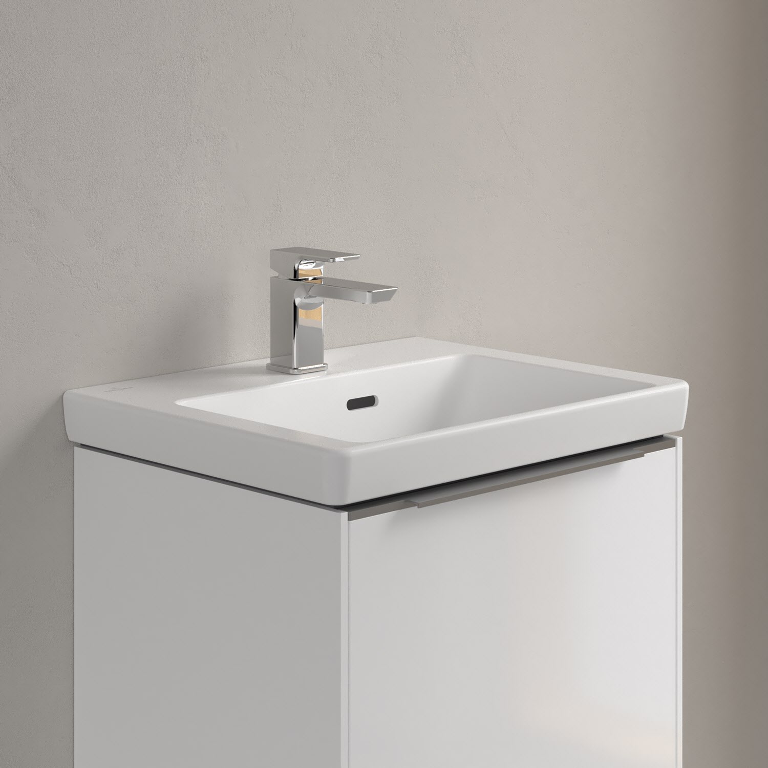 Das rechteckige Handwaschbecken der Kollektion Subway 3.0 von Villeroy & Boch zeigt sich in gewohnt zeitlosem Design. So passt es perfekt in die unterschiedlichsten Badsituationen. Sein schmaler Rand und das längliche Überlaufloch sorgen für einen modernen Look und ein stilvolles Gesamtbild. Mit seiner Tiefe erfüllt es trotz kompakter Größe alle Anforderungen des Alltags und bietet ausreichend Platz zum Hände waschen oder Zähne putzen. Auf der breiten Hahnlochbank findet sich genügend Platz für Seifenspender und andere Utensilien.