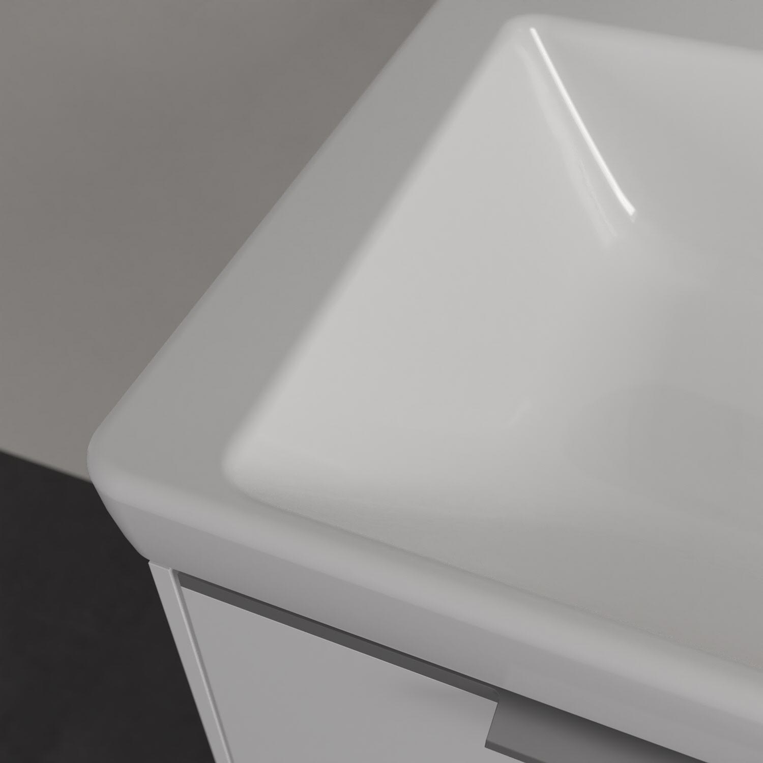 Der rechteckige Schrankwaschtisch der Kollektion Subway 3.0 von Villeroy & Boch zeigt sich in gewohnt zeitlosem Design. Sein schmaler Rand sorgt nicht nur für einen modernen Look, sondern auch für ein noch größeres Becken. Mit seiner Tiefe ermöglicht es eine vielfältige Nutzung auch abseits von Hände waschen und Zähne putzen: Es bietet beispielsweise ausreichend Platz zum Haare waschen oder Einweichen von Wäsche. Sowohl auf der breiten Hahnlochbank wie auch den beiden seitlichen Ablageflächen findet sich genügend Fläche für Seifenspender und andere Utensilien. Gefertigt ist das Waschbecken aus dem innovativen Werkstoff TitanCeram. Er verleiht ihm seine feinen Konturen und macht es besonders widerstandsfähig und robust – für lange Freude am Produkt!