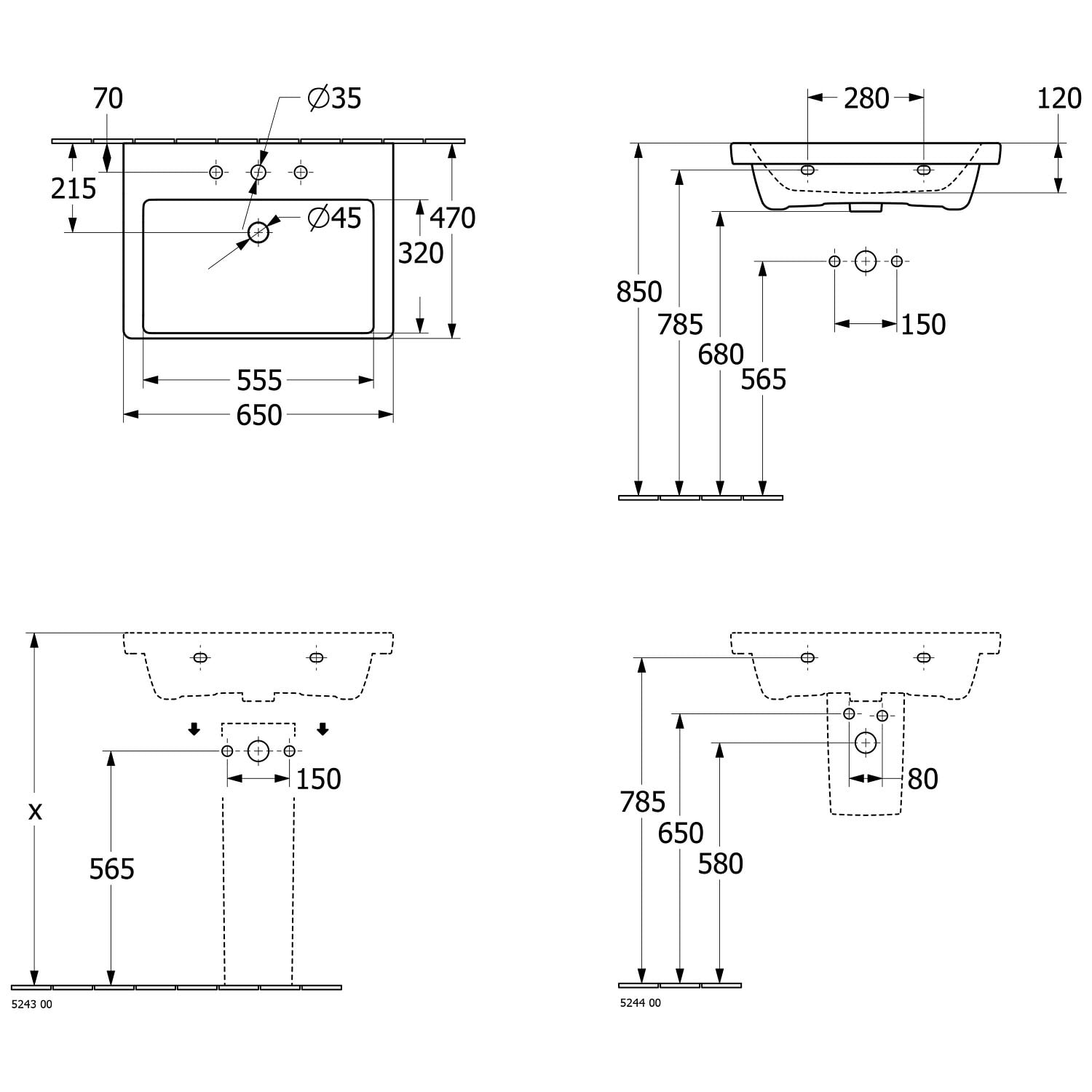 Villeroy & Boch Subway 3.0 Schrankwaschtisch 65 cm, ohne Hahnloch, ohne Überlauf