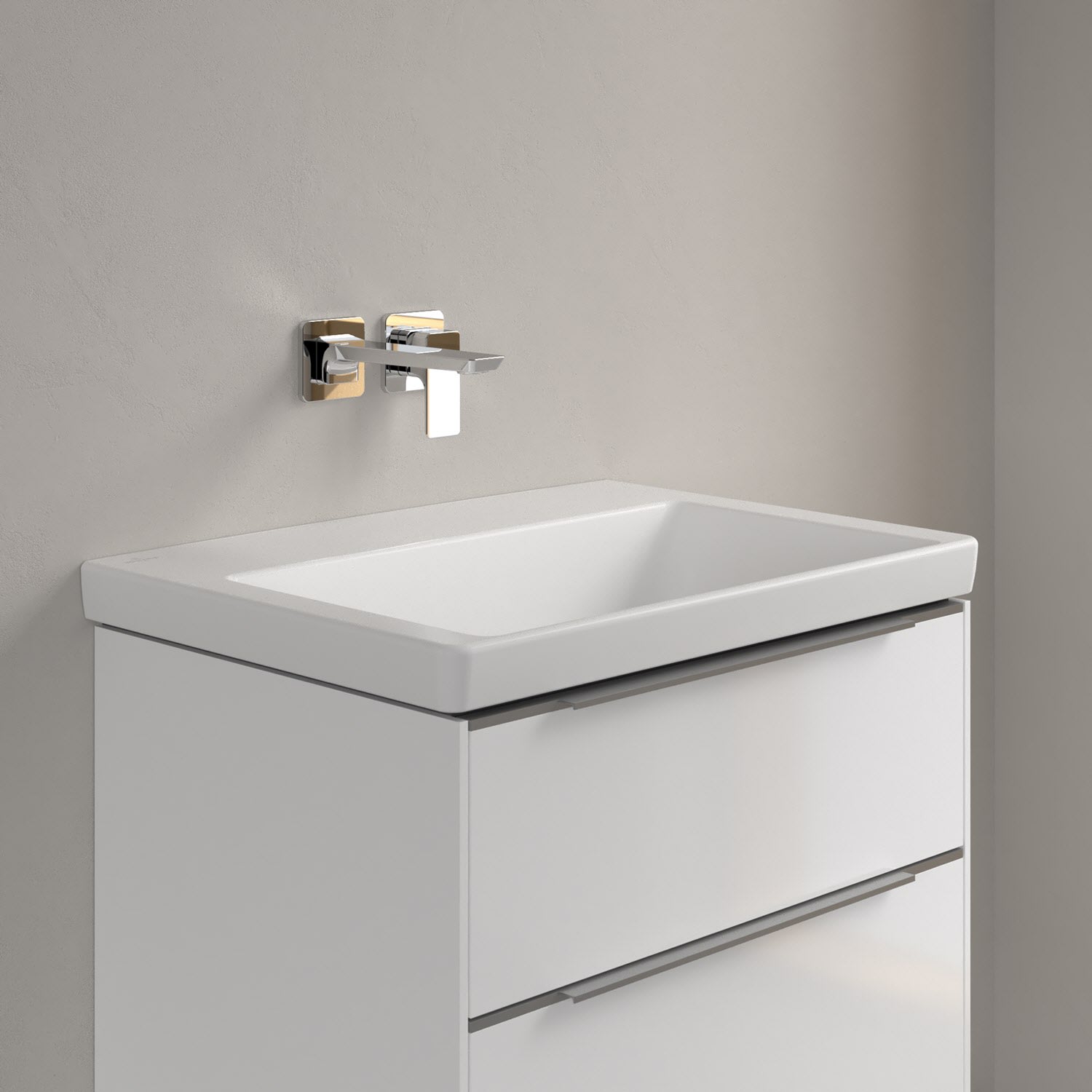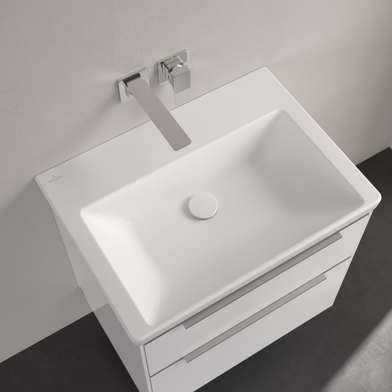 Der rechteckige Schrankwaschtisch der Kollektion Subway 3.0 von Villeroy & Boch zeigt sich in gewohnt zeitlosem Design. Sein schmaler Rand sorgt nicht nur für einen modernen Look, sondern auch für ein noch größeres Becken. Mit seiner Tiefe erfüllt es alle Anforderungen des Alltags und bietet ausreichend Platz zum Hände waschen, Zähne putzen oder sogar für die Textilwäsche. Und auf der breiten Hahnlochbank findet sich genügend Ablagefläche für Seifenspender und andere Utensilien. Noch ein Pluspunkt: Dank der schmutzabweisenden Oberfläche fällt die Reinigung besonders leicht. Gefertigt ist das Waschbecken aus dem innovativen Werkstoff TitanCeram. Er verleiht ihm seine feinen Konturen und macht es besonders widerstandsfähig und robust – für lange Freude am Produkt