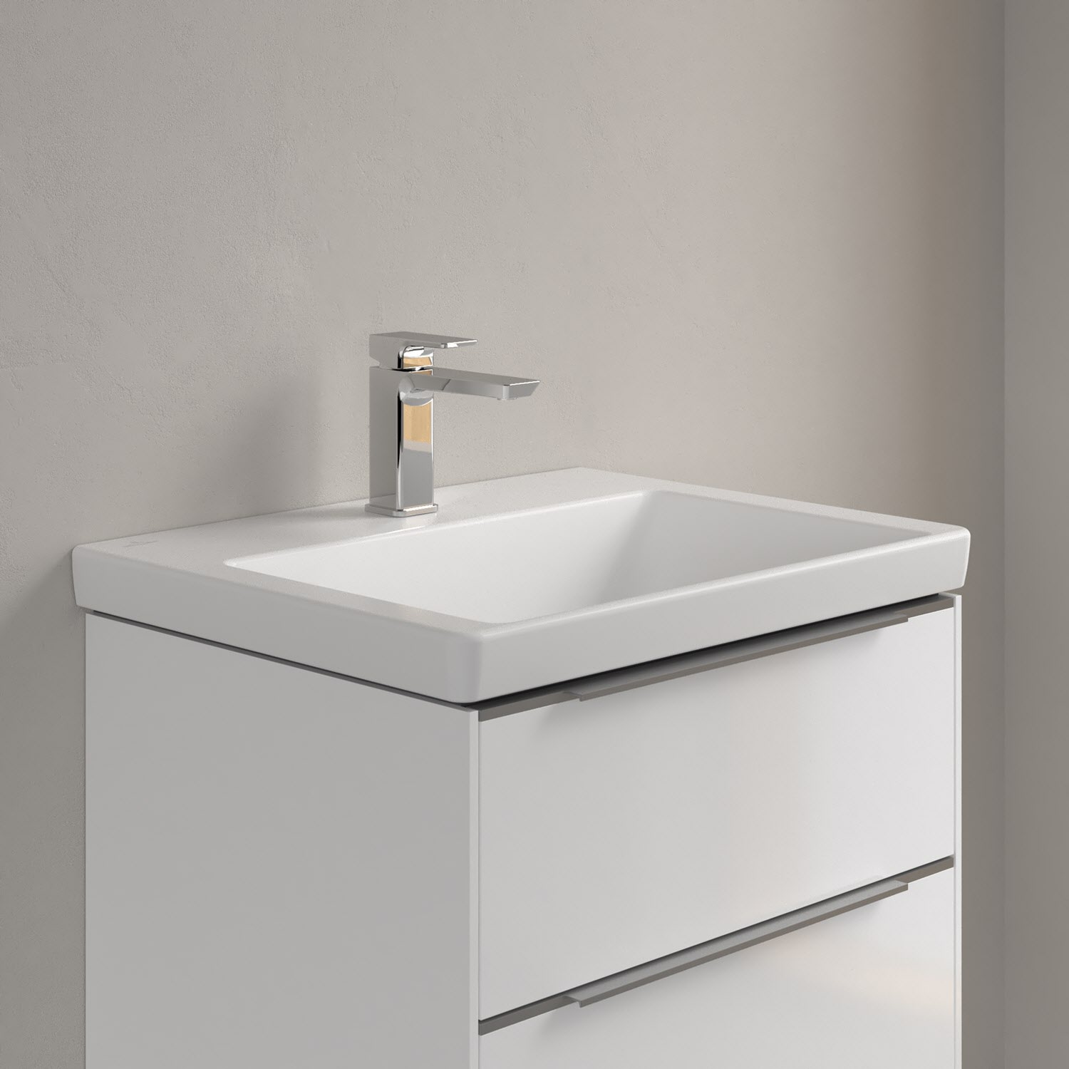 Der rechteckige Schrankwaschtisch der Kollektion Subway 3.0 von Villeroy & Boch zeigt sich in gewohnt zeitlosem Design. Sein schmaler Rand sorgt nicht nur für einen modernen Look, sondern auch für ein noch größeres Becken. Mit seiner Tiefe erfüllt es alle Anforderungen des Alltags und bietet ausreichend Platz zum Hände waschen, Zähne putzen oder sogar für die Textilwäsche und auf der breiten Hahnlochbank findet sich genügend Ablagefläche für Seifenspender und andere Utensilien. Gefertigt ist das Waschbecken aus dem innovativen Werkstoff TitanCeram. Er verleiht ihm seine feinen Konturen und macht es besonders widerstandsfähig und robust – für lange Freude am Produkt!