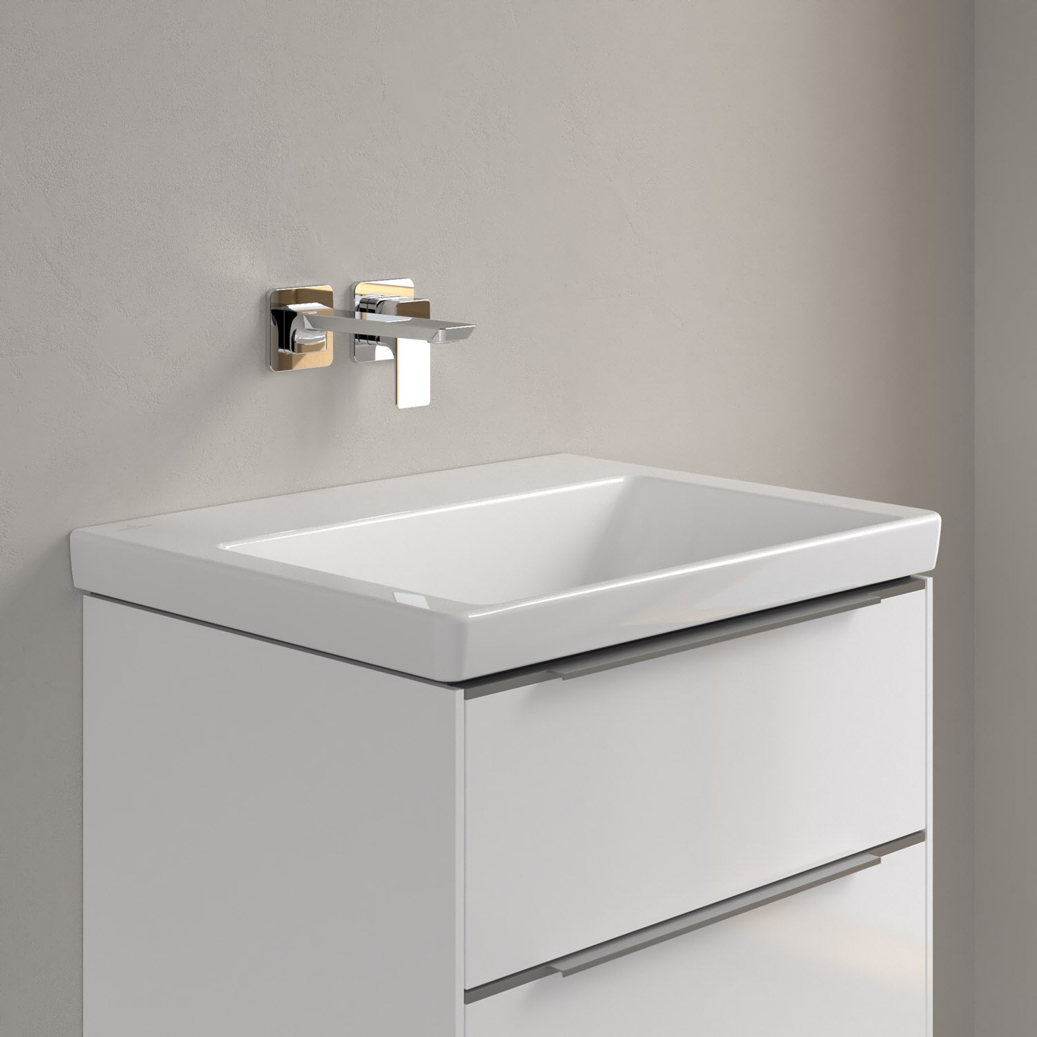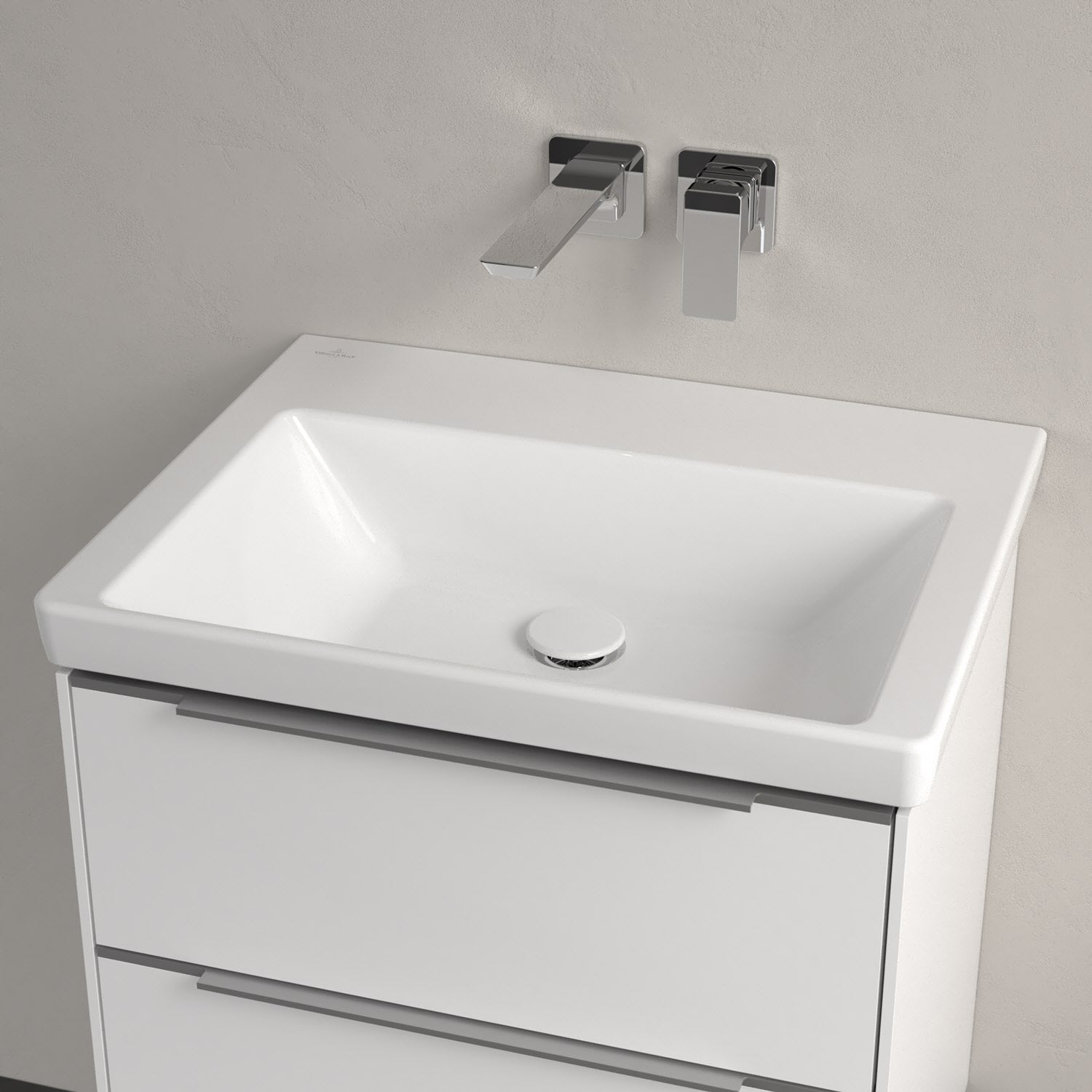 Der rechteckige Schrankwaschtisch der Kollektion Subway 3.0 von Villeroy & Boch zeigt sich in gewohnt zeitlosem Design. Sein schmaler Rand sorgt nicht nur für einen modernen Look, sondern auch für ein noch größeres Becken. Mit seiner Tiefe erfüllt es alle Anforderungen des Alltags und bietet ausreichend Platz zum Hände waschen, Zähne putzen oder sogar für die Textilwäsche. Und auf der breiten Hahnlochbank findet sich genügend Ablagefläche für Seifenspender und andere Utensilien. Noch ein Pluspunkt: Dank der schmutzabweisenden Oberfläche fällt die Reinigung besonders leicht. Gefertigt ist das Waschbecken aus dem innovativen Werkstoff TitanCeram. Er verleiht ihm seine feinen Konturen und macht es besonders widerstandsfähig und robust – für lange Freude am Produkt!