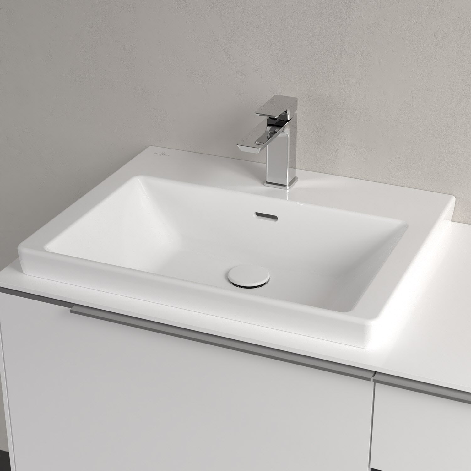 Der rechteckige Schrankwaschtisch der Kollektion Subway 3.0 von Villeroy & Boch zeigt sich in gewohnt zeitlosem Design. Sein schmaler Rand und das längliche Überlaufloch sorgen für einen modernen Look und ein stilvolles Gesamtbild. Das tiefe Becken erfüllt alle Anforderungen des Alltags und bietet ausreichend Platz zum Hände waschen, Zähne putzen oder sogar für die Textilwäsche. Und auf der breiten Hahnlochbank findet sich genügend Ablagefläche für Seifenspender und andere Utensilien. Noch ein Pluspunkt: Dank der schmutzabweisenden Oberfläche fällt die Reinigung besonders leicht. Gefertigt ist das Waschbecken aus dem innovativen Werkstoff TitanCeram. Er verleiht ihm seine feinen Konturen und macht es besonders widerstandsfähig und robust – für lange Freude am Produkt!