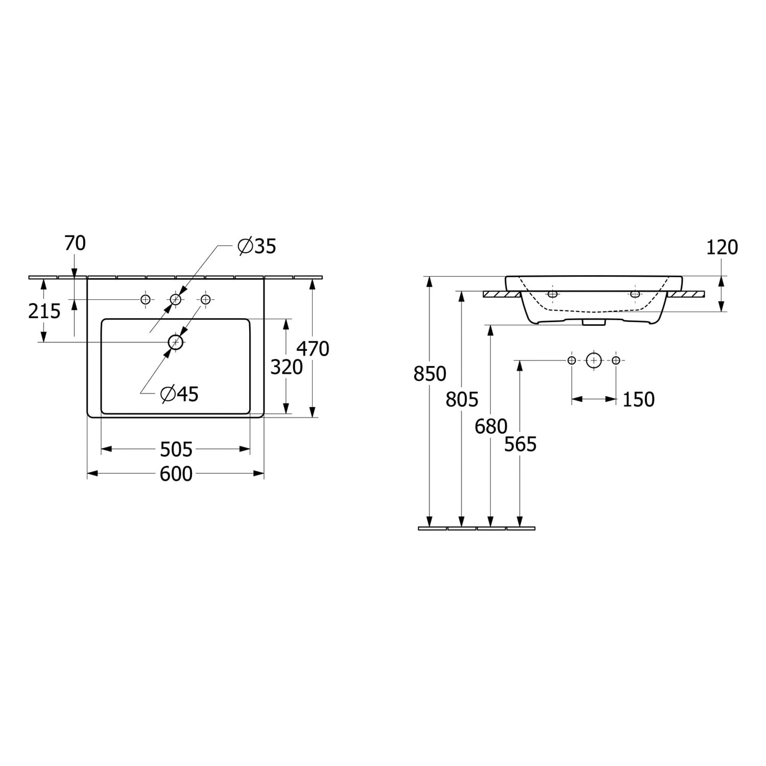 Der rechteckige Schrankwaschtisch der Kollektion Subway 3.0 von Villeroy & Boch zeigt sich in gewohnt zeitlosem Design. Sein schmaler Rand und das längliche Überlaufloch sorgen für einen modernen Look und ein stilvolles Gesamtbild. Das tiefe Becken erfüllt alle Anforderungen des Alltags und bietet ausreichend Platz zum Hände waschen, Zähne putzen oder sogar für die Textilwäsche. Und auf der breiten Hahnlochbank findet sich genügend Ablagefläche für Seifenspender und andere Utensilien. Noch ein Pluspunkt: Dank der schmutzabweisenden Oberfläche fällt die Reinigung besonders leicht. Gefertigt ist das Waschbecken aus dem innovativen Werkstoff TitanCeram. Er verleiht ihm seine feinen Konturen und macht es besonders widerstandsfähig und robust – für lange Freude am Produkt!