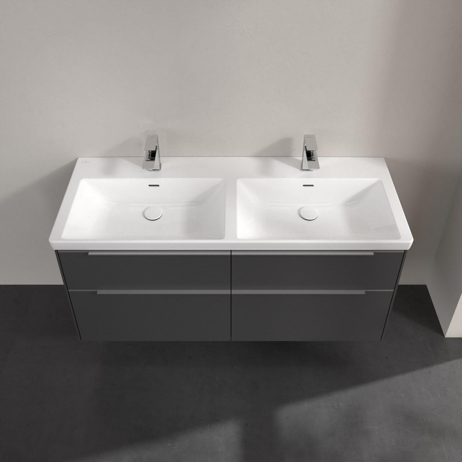 Villeroy & Boch Subway 3.0 Schrank-Doppelwaschtisch 130 cm, mit 2 Hahnlöchern, ohne Überlauf