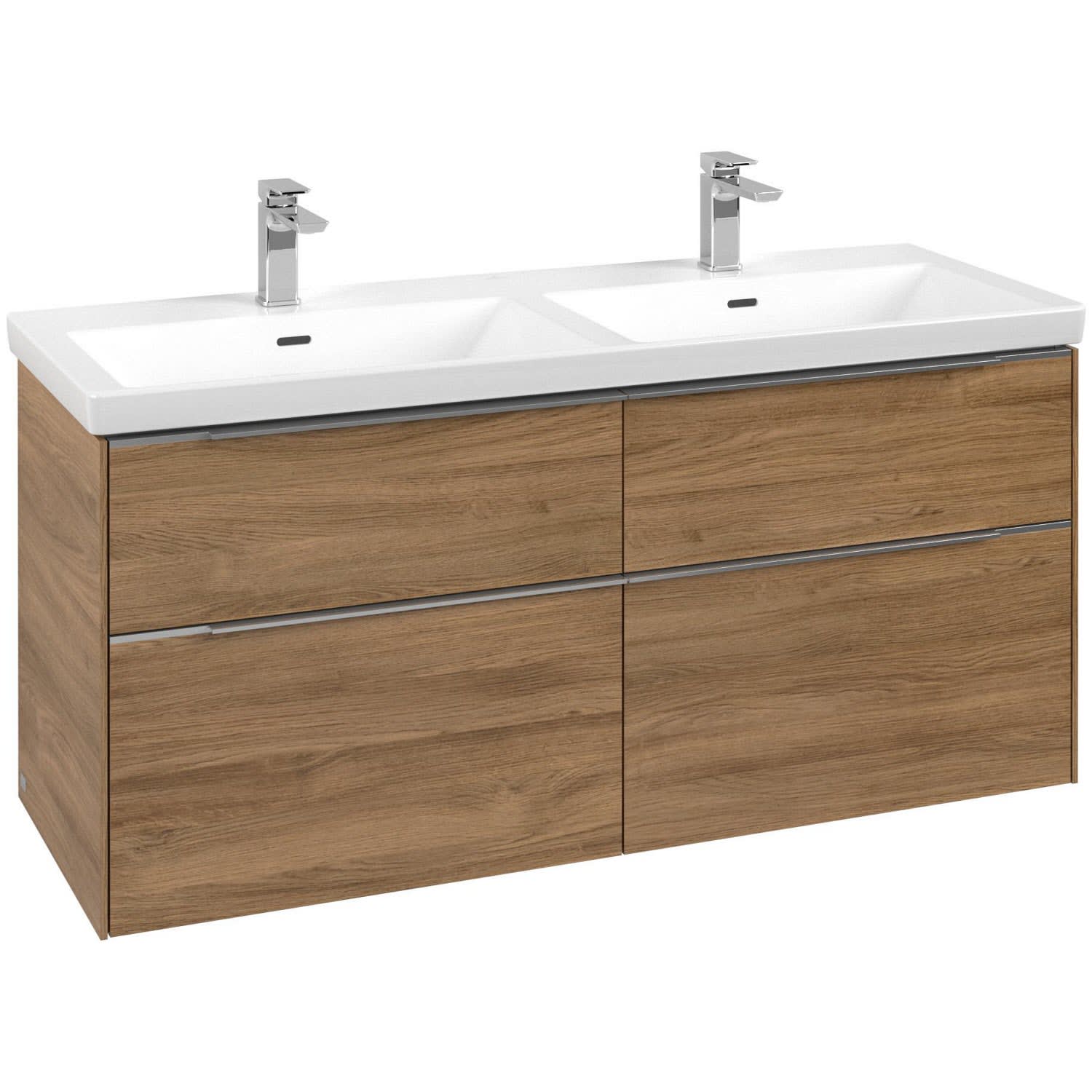 Villeroy & Boch Subway 3.0 Schrank-Doppelwaschtisch 130 cm, mit 2 Hahnlöchern, ohne Überlauf