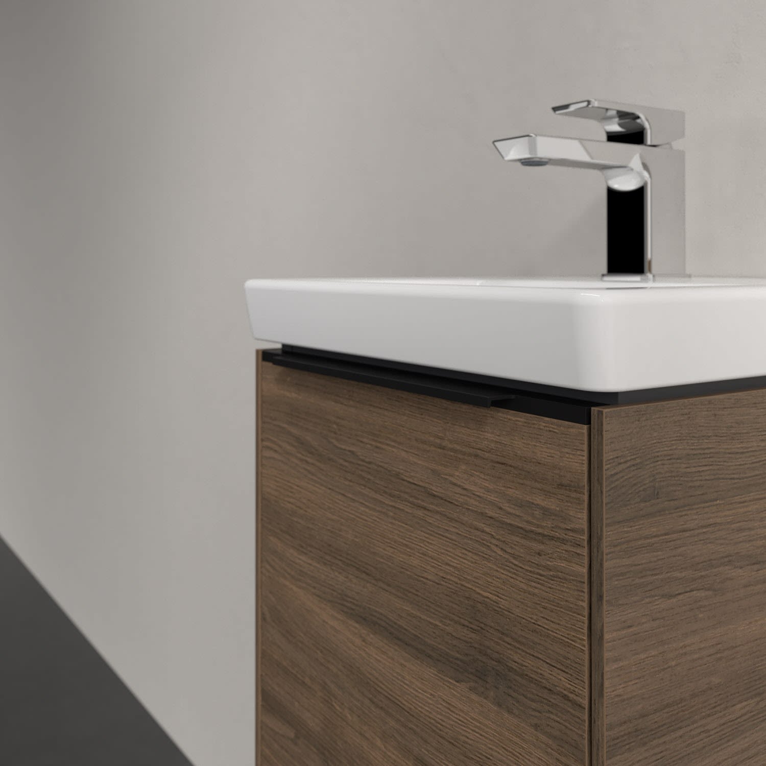 Der Waschtischunterschrank der Kollektion Subway 3.0 von Villeroy & Boch besticht durch gradliniges, zeitloses Design und ausreichend Stauraum. Front und Korpus sind mit einer hochwertigen Direktbeschichtung oder Lackierung, deren Anti-Fingerprint-Oberfläche unschönen Fingerabdrücken vorbeugt, versehen. Hinter der Tür findet sich großzügiger Stauraum für Pflege- und Hygieneartikel. Die dezente Griffleiste sorgt für einfache Handhabung und bildet einen besonderen Design-Akzent.