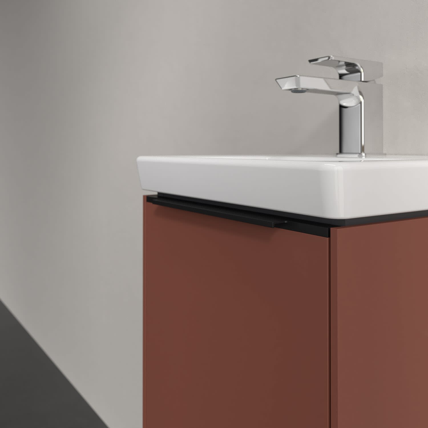 Der Waschtischunterschrank der Kollektion Subway 3.0 von Villeroy & Boch besticht durch gradliniges, zeitloses Design und ausreichend Stauraum. Front und Korpus sind mit einer hochwertigen Direktbeschichtung oder Lackierung, deren Anti-Fingerprint-Oberfläche unschönen Fingerabdrücken vorbeugt, versehen. Hinter der Tür findet sich großzügiger Stauraum für Pflege- und Hygieneartikel. Die dezente Griffleiste sorgt für einfache Handhabung und bildet einen besonderen Design-Akzent.