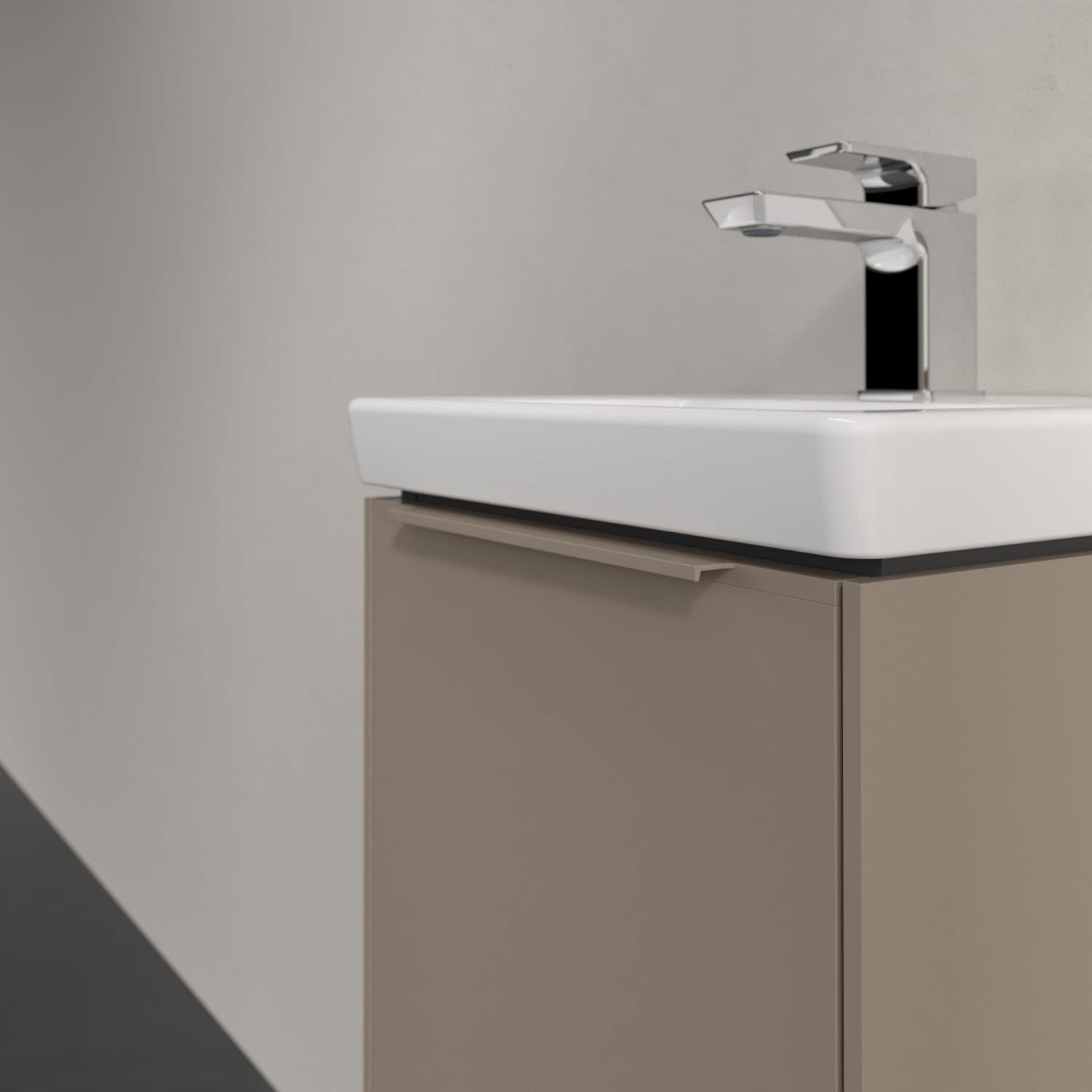 Der Waschtischunterschrank der Kollektion Subway 3.0 von Villeroy & Boch besticht durch gradliniges, zeitloses Design und ausreichend Stauraum. Front und Korpus sind mit einer hochwertigen Direktbeschichtung oder Lackierung, deren Anti-Fingerprint-Oberfläche unschönen Fingerabdrücken vorbeugt, versehen. Hinter der Tür findet sich großzügiger Stauraum für Pflege- und Hygieneartikel. Die dezente Griffleiste sorgt für einfache Handhabung und bildet einen besonderen Design-Akzent.