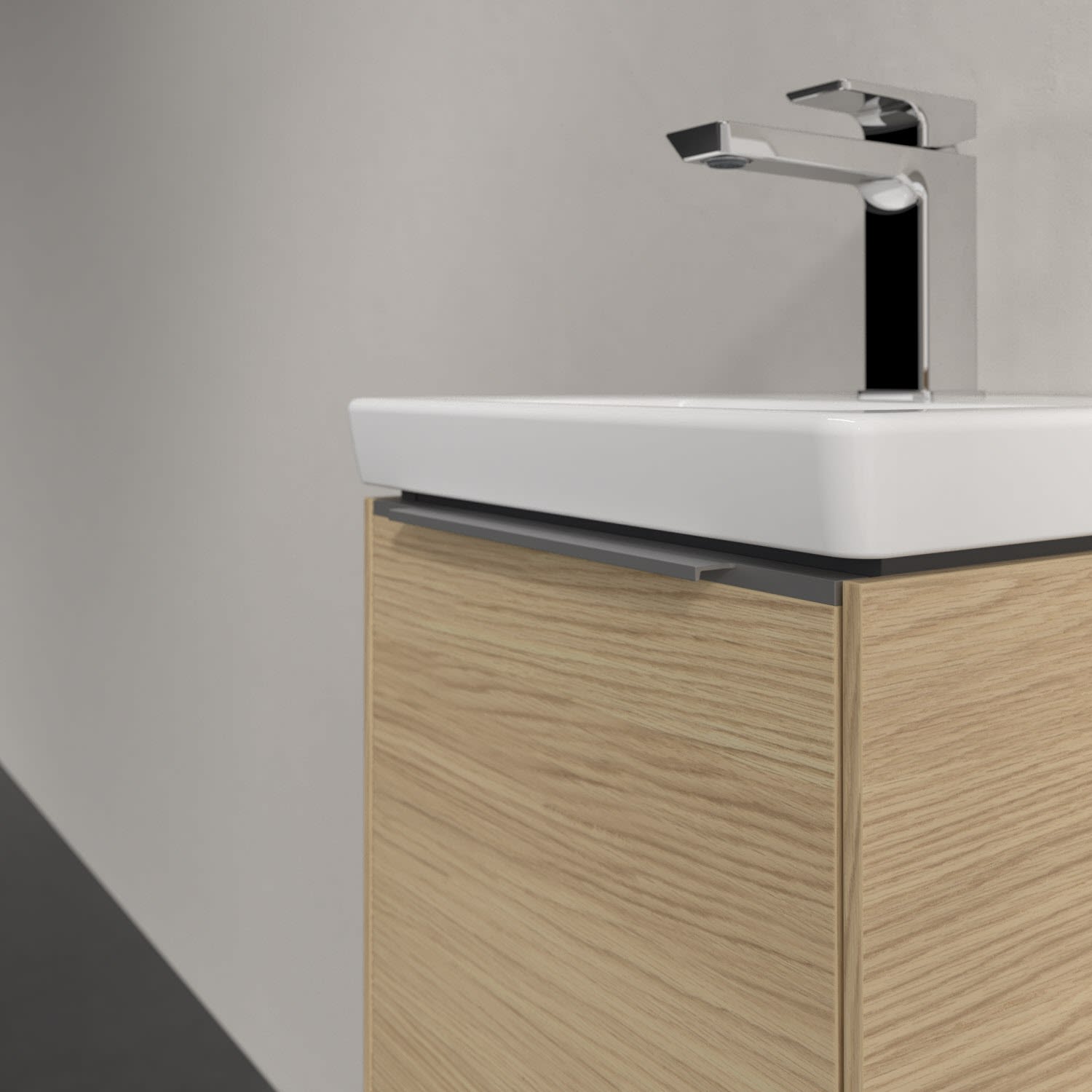 Der Waschtischunterschrank der Kollektion Subway 3.0 von Villeroy & Boch besticht durch gradliniges, zeitloses Design und ausreichend Stauraum. Front und Korpus sind mit einer hochwertigen Direktbeschichtung oder Lackierung, deren Anti-Fingerprint-Oberfläche unschönen Fingerabdrücken vorbeugt, versehen. Hinter der Tür findet sich großzügiger Stauraum für Pflege- und Hygieneartikel. Die dezente Griffleiste sorgt für einfache Handhabung und bildet einen besonderen Design-Akzent.