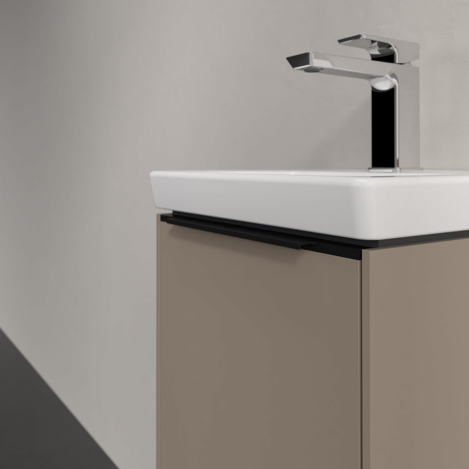 Der Waschtischunterschrank der Kollektion Subway 3.0 von Villeroy & Boch besticht durch gradliniges, zeitloses Design und ausreichend Stauraum. Front und Korpus sind mit einer hochwertigen Direktbeschichtung oder Lackierung, deren Anti-Fingerprint-Oberfläche unschönen Fingerabdrücken vorbeugt, versehen. Hinter der Tür findet sich großzügiger Stauraum für Pflege- und Hygieneartikel. Die dezente Griffleiste sorgt für einfache Handhabung und bildet einen besonderen Design-Akzent.