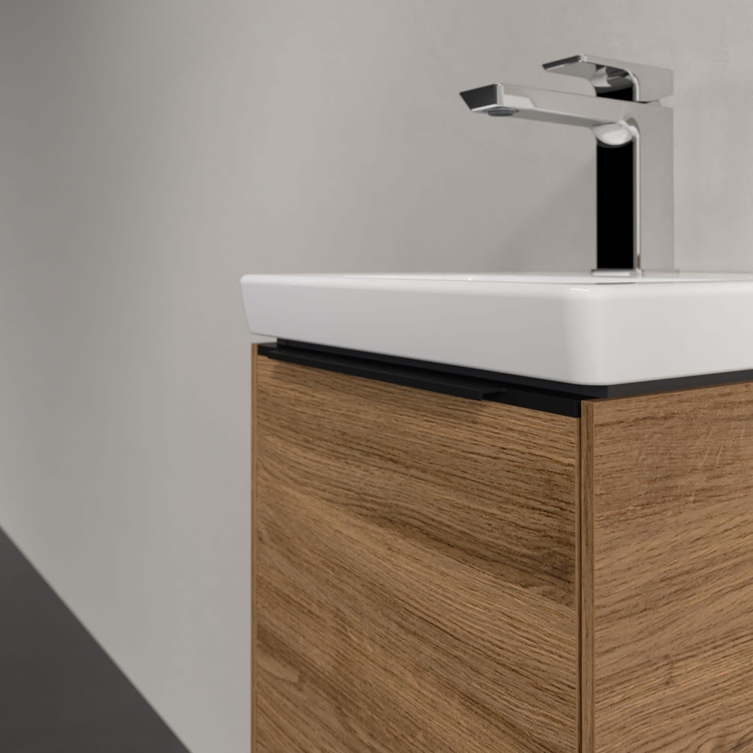 Der Waschtischunterschrank der Kollektion Subway 3.0 von Villeroy & Boch besticht durch gradliniges, zeitloses Design und ausreichend Stauraum. Front und Korpus sind mit einer hochwertigen Direktbeschichtung oder Lackierung, deren Anti-Fingerprint-Oberfläche unschönen Fingerabdrücken vorbeugt, versehen. Hinter der Tür findet sich großzügiger Stauraum für Pflege- und Hygieneartikel. Die dezente Griffleiste sorgt für einfache Handhabung und bildet einen besonderen Design-Akzent.
