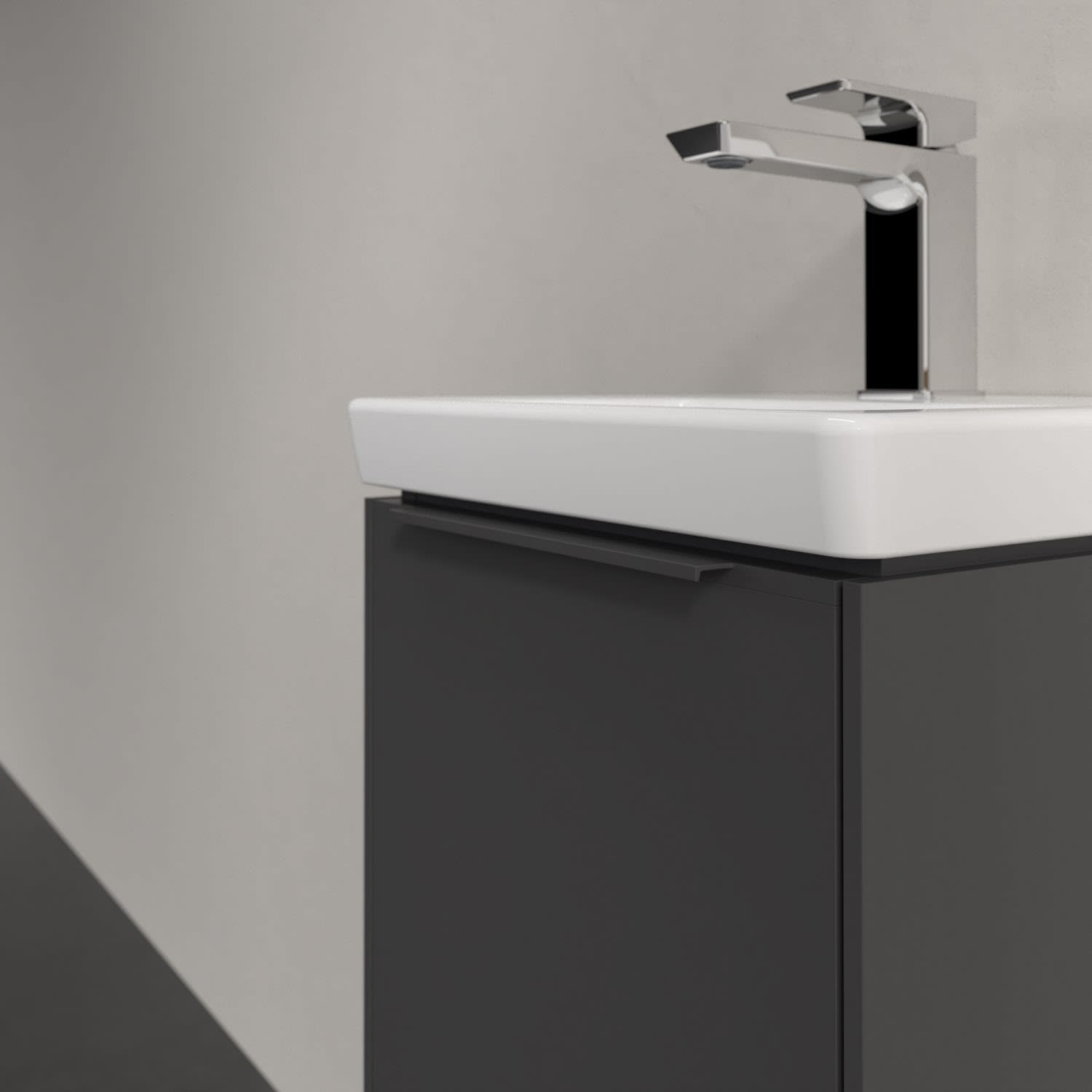 Der Waschtischunterschrank der Kollektion Subway 3.0 von Villeroy & Boch besticht durch gradliniges, zeitloses Design und ausreichend Stauraum. Front und Korpus sind mit einer hochwertigen Direktbeschichtung oder Lackierung, deren Anti-Fingerprint-Oberfläche unschönen Fingerabdrücken vorbeugt, versehen. Hinter der Tür findet sich großzügiger Stauraum für Pflege- und Hygieneartikel. Die dezente Griffleiste sorgt für einfache Handhabung und bildet einen besonderen Design-Akzent.