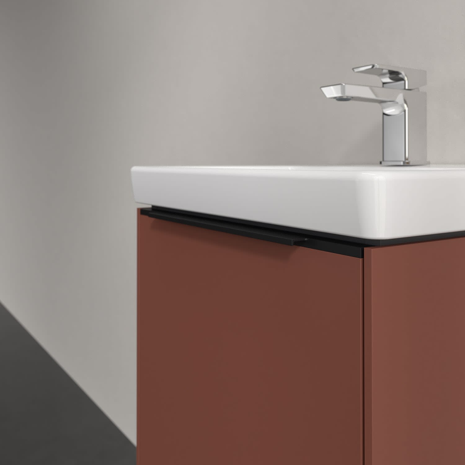 Der Waschtischunterschrank der Kollektion Subway 3.0 von Villeroy & Boch besticht durch gradliniges, zeitloses Design und ausreichend Stauraum. Front und Korpus sind mit einer hochwertigen Direktbeschichtung oder Lackierung, deren Anti-Fingerprint-Oberfläche unschönen Fingerabdrücken vorbeugt, versehen. Hinter der Tür findet sich großzügiger Stauraum für Pflege- und Hygieneartikel. Die dezente Griffleiste sorgt für einfache Handhabung und bildet einen besonderen Design-Akzent.