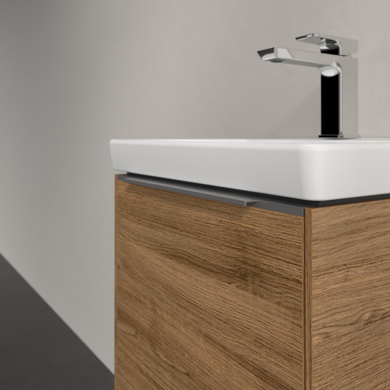 Der Waschtischunterschrank der Kollektion Subway 3.0 von Villeroy & Boch besticht durch gradliniges, zeitloses Design und ausreichend Stauraum. Front und Korpus sind mit einer hochwertigen Direktbeschichtung oder Lackierung, deren Anti-Fingerprint-Oberfläche unschönen Fingerabdrücken vorbeugt, versehen. Hinter der Tür findet sich großzügiger Stauraum für Pflege- und Hygieneartikel. Die dezente Griffleiste sorgt für einfache Handhabung und bildet einen besonderen Design-Akzent.